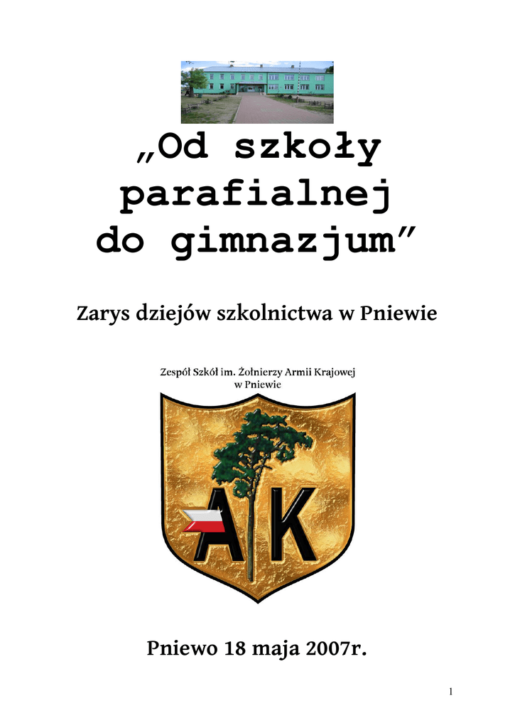 Historia szkolnictwa w Pniewie - Zespół Szkół im. Żołnierzy Armii