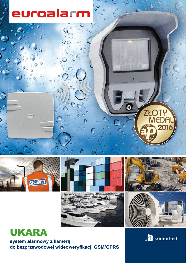 UKARA UKARA system alarmowy z kamerą do bezprzewodowej wideoweryfikacji GSM/GPRS Kamera i czujnik OMV210 Opcjonalnie 4 soczewki Fresnela oraz elastyczny zestaw do maskowania wybranych stref Zewnętrzny dostęp do przycisku programowania 4 diody IR do oświetlenia sceny w warunkach nocnych Wejścia (3) i wyjścia (1) przewodowe do uniwersalnej integracji z urządzeniami firm trzecich, np. oświetlenia, bariery, syrena itp. Kamera dzień/noc o rozdzielczości QVGA 1100,00 zł netto Wbudowany żyroskop alarmu sabotażowego 868 MHz Bateria o wydłużonym czasie działania 4 LS 14500 litowa AA Jednopunktowy montaż korpusu umożliwia szybką wymianę baterii Centrala XTO210 (zewnętrzna IP65) Centrala XL200GPRS Centrala XT/XT-iP • Współpraca z 25 urządzeniami bezprzewodowymi 868Mhz • 3 wejścia, 2 wyjścia przewodowe • Komunikacja GPRS, antena o wzmocnionym zasięgu • Możliwość pracy tylko na bateriach (min. 2 lata) • Wbudowany czytnik zbliżeniowy VT100, sygnalizator wew. • Współpraca z 19 urządzeniami bezprzewodowymi • Komunikacja GPRS • Dwukierunkowa komunikacja głosowa • Możliwa praca tylko na bateriach 8xLR20 • Komunikacja GPRS • Komunikacja IP (tylko centrala XT-iP) • Współpraca z 25 urządzeniami bezprzewodowymi 868Mhz • 3 wejścia, 2 wyjścia przewodowe • Współpracy z centralami innych firm (rozbudowa instalacji) 868 MHz 868 MHz 868 MHz Centrala W-IP210 (wewnętrzna) Czytnik breloków zbliżeniowych BR250 Sygnalizator zewnętrzny OSX200 • Komunikacja GPRS, oraz IP • Współpraca z 25 urządzeniami - 868Mhz • Opcjonalny sygnalizator wew. (moduł WIS100) • Opcjonalna karta WI-FI (moduł WWB100) • Opcjonalna karta 1xWEJ./2xWYJ. (moduł WIO100) • Zasilanie 230V • Czytnik do uzbrajania/rozbrajania systemu • Zastosowanie wew./zew. dedykowany do breloków VT100 • Zasilanie bateryjne litowe 3xLS14500 • Temperatura pracy -30oC/+70oC • Praca w zakresie temp. -30oC/60oC • Sygnalizacja optyczna i akustyczna na poziomie do 105dB • Potwierdzenie uzbrajania/rozbrajania systemu • Zasilanie bateryjne alkaliczne 3xLR20 – czas pracy 2 lata 868 MHz 868 MHz 868 MHz Bezpieczeństwo APPlikacja na SMARTFONA Twój dom i rodzina bliżej Ciebie Komfort Łączność UKARA Dla każdej Agencja Ochrony, oprogramowanie dla stacji monitorującej jest bezpłatne. Funkcja wideoweryfikacji jest kompatybilna z programami firmy Kronos i AD iNFO. licencja ver. UK 015.01 Twój smartfon stanie się interaktywnym urządzeniem w ochronie Twojego domu i firmy. UKARA jest na wyciągnięcie ręki, dla wygody i bezpieczeństwa. APPlikacja jest dostępna dla smartfonów z systemem Android i iOS (App Store). Dzięki niej możesz: • zdalnie załączyć i wyłączyć system, • zobaczyć stan systemu oraz video, także ze zdarzeń archiwalnych. Czujnik PIR z kamerą IMV Czujnik PIR-IMD Manipulatior XMA210/XMB210 Pilot RC200 • Wideo weryfikacja: kolorowy strumień wideo • Montaż naścienny, opcja odporna na zwierzęta (IMVA) • Zasilanie bateryjne litowe 2xLS14500 (min 2 lata) • Temperatura pracy -10oC/+60oC • opcja odporna na zwierzęta • wersja kurtynowa • Zasilanie bateryjne litowe 1xLS14500 (min 2 lata) • Temperatura pracy -10o C/+60o C. • Zastosowanie wewnętrzne, bezprzewodowa • Wbudowany czytnik breloków VT100 (tylko XMB210) • Wyświetlacz LCD • Pilot do uzbrajania/rozbrajania systemu • Możliwość zaprogramowania dwóch opcji uzbrajania 868 MHz 868 MHz 868 MHz 868 MHz Kontaktron IDC200/IDC210 868 MHz Wszystkie urządzenia bezprzewodowe pracują w paśmie 868 MHz. Gwarantowany zasięg między centralą a urządzeniami peryferyjnymi wynosi 150m w terenie otwartym. Transmisja sygnału alarmowego, video i audio z centrali do agencji ochrony lub na smartfona odbywa się przez sieć GSM dowolnego operatora. • Praca w zakresie temp. -10oC/+40oC • Zasilanie bateryjne 1 xCR123 – czas pracy 2 lata • Kontaktron IDC200 kolor biały / IDC210 kolor brązowy 868 MHz Uniwersalny transmiter z kontaktronem CT201 • Zastosowanie wewnętrzne • Praca w zakresie temp. -10oC/+40oC • Możliwość podłączenia zewnętrznego obwodu • Trzy tryby pracy 868 MHz Czujnik dymu ISD 200 • Praca w zakresie temp. 0oC/+50oC • Sygnalizacja optyczna i dźwiękowa • Optyczna sygnalizacja stanu baterii i usterki 868 MHz UKARA NAJLEPSZY PRACOWNIK AGENCJI OCHRONY Dotychczas parametrami rzutującymi na ocenę profesjonalnych usług ochroniarskich były: liczba samochodów patrolowych, gwarantowany czas dojazdu grupy interwencyjnej, rodzaj łączności i możliwość świadczenia innych usług, np. konwojowania. Duże znaczenie miało i ma nadal oprogramowanie stacji monitorowania i zastosowane procedury w sytuacjach alarmowych. Wprowadzenie systemu UKARA z wideoweryfikacją zbiegło się w Polsce z planowanymi zmianami dotyczącymi umów o pracę, a to wymusi wzrost wynagrodzeń pracowników ochrony fizycznej. Weryfikacja wizyjna pozwoli na zmniejszenie stanu osobowego i liczby grup interwencyjnych. Zestaw bezprzewodowy do wideoweryfikacji GSM/GPRS oraz przykładowe zastosowania Z naszych spostrzeżeń, popartych informacjami z Wielkiej Brytanii, Francji, USA, a także już z Polski, swoją konkurencyjność podniosły agencje ochroniarskie, które wprowadziły system UKARA z wideoweryfikacją (UKARA jest nazwą handlową całej gamy bezprzewodowych urządzeń francuskiej firmy Videofied). Agencje te mogły zaproponować produkt do wielu aplikacji, szczególnie do systemów, gdzie dostęp do zasilania 230 V był niemożliwy, gdyż system może w 100% działać na zasilaniu bateriami wewnętrznymi (co najmniej 2 lata ). Weryfikacja wizyjna pozwala operatorowi stacji monitorującej na analizę obrazu, który został przesłany tuż po odebraniu sygnału o naruszeniu strefy chronionej. Przy zabezpieczaniu terenów otwartych, trudno dostępnych, umożliwia to szybkie ustalenie, czy jest to naruszenie spowodowane przez intruza, czy inne czynniki np. z