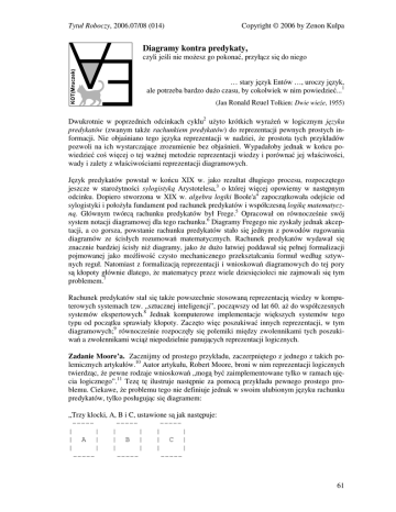 diagramów do reprezentacji wnioskowa logicznych, jak próbował to zrobi tak e Frege. Takie diagramy logiczne b d tematem nast pnych odcinków cyklu.