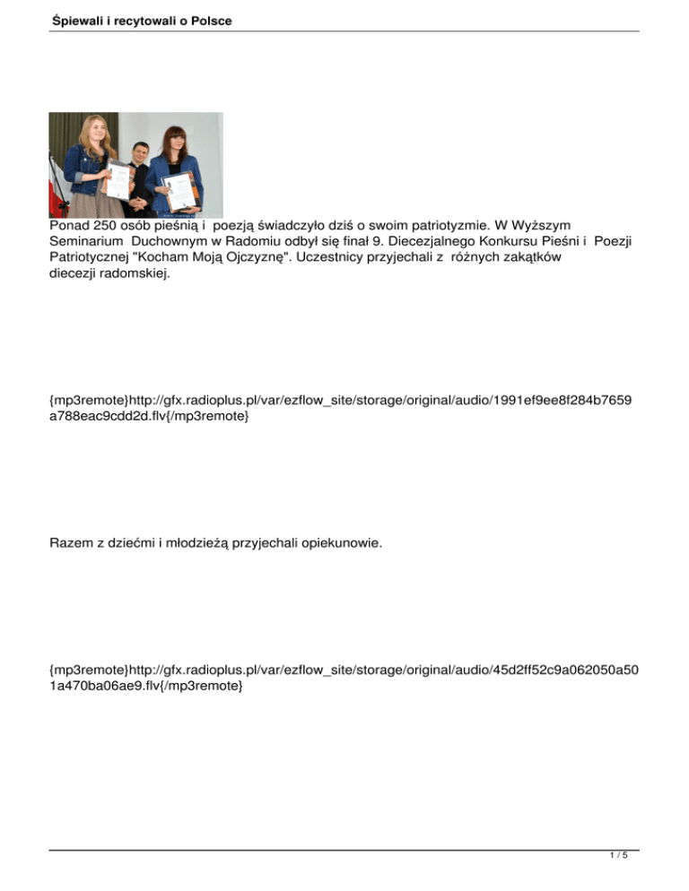 szczególną potrzebę mówienia i śpiewania o Polsce w obecnych czasach.