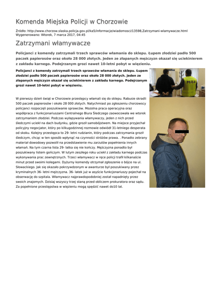 Generuj PDF - Komenda Miejska Policji w Chorzowie