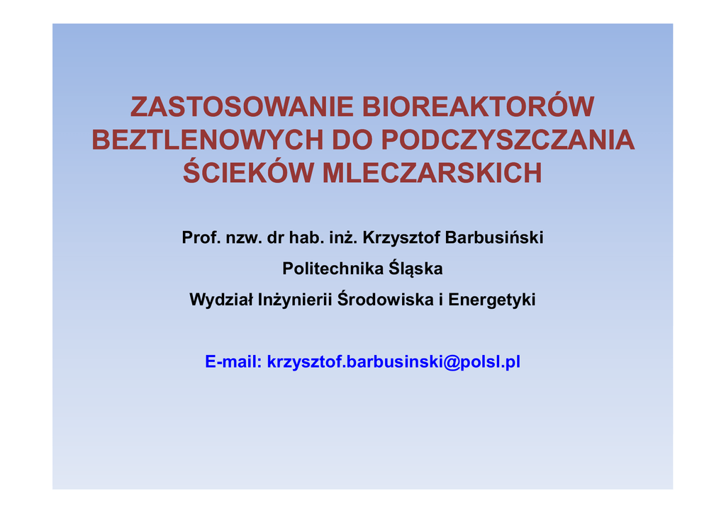 zastosowanie bioreaktorów beztlenowych do podczyszczania