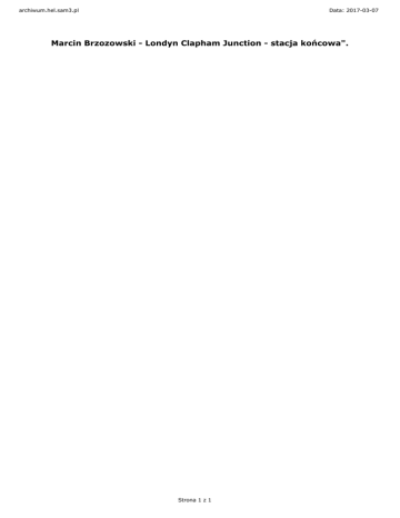 archiwum.hel.sam3.pl Data: 2017-03-07 Marcin Brzozowski - Londyn Clapham Junction - stacja końcowa". Strona 1 z 1