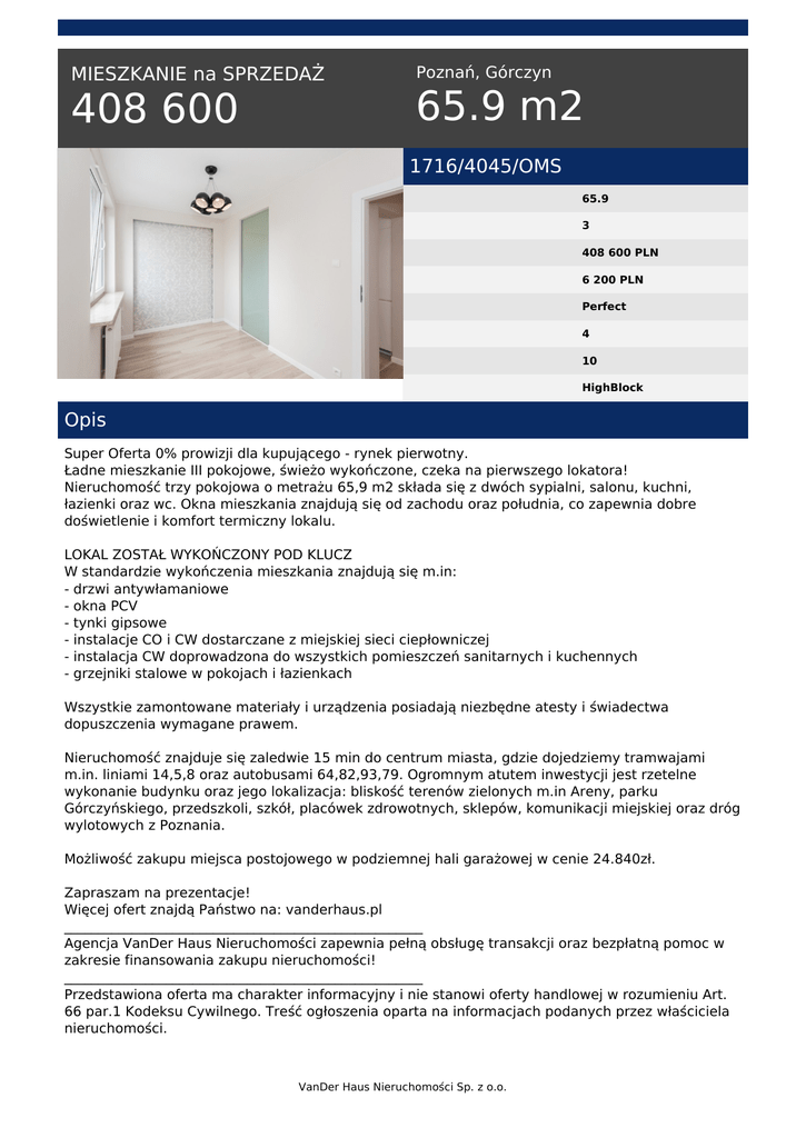 408 600 65.9 m2 - VanDer Haus Nieruchomości