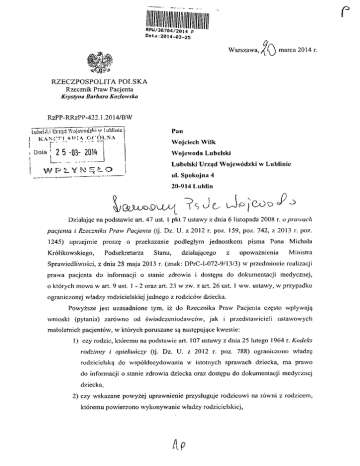 Powyzsze jest uzasadnione lym, iz do Rzecznika Praw Pacjenta cz?sto wplywaj^