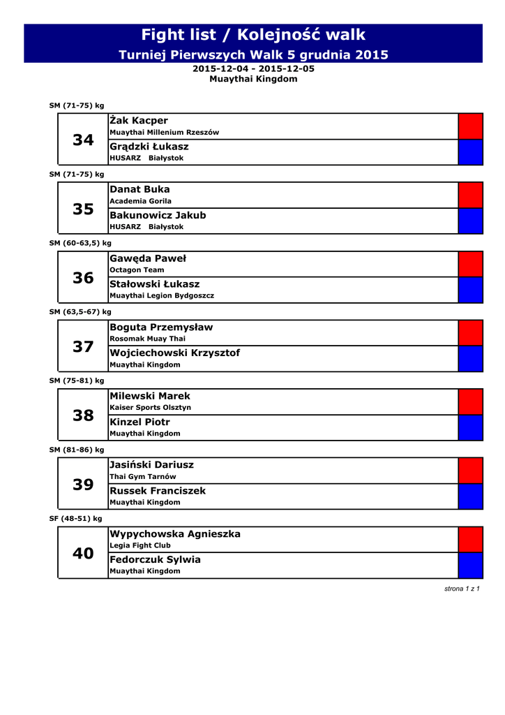 Fight list / Kolejność walk 34 35 36 37 38 39 40