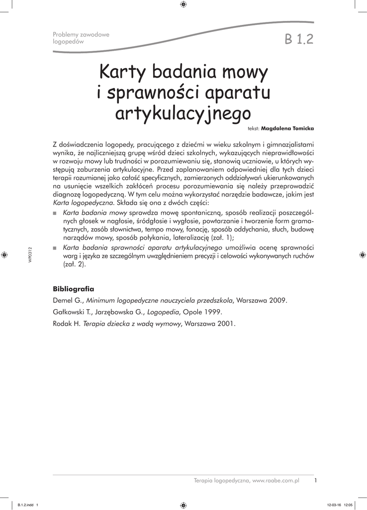 Karty badania mowy i sprawności aparatu artykulacyjnego