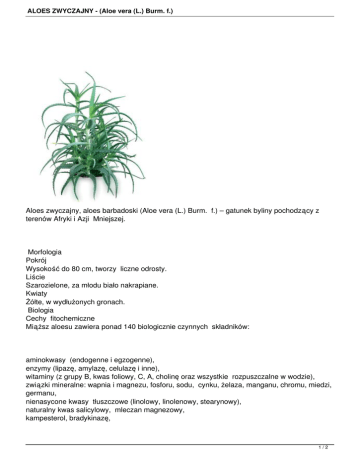 Miąższ aloesu zawiera ponad 140 biologicznie czynnych składników: