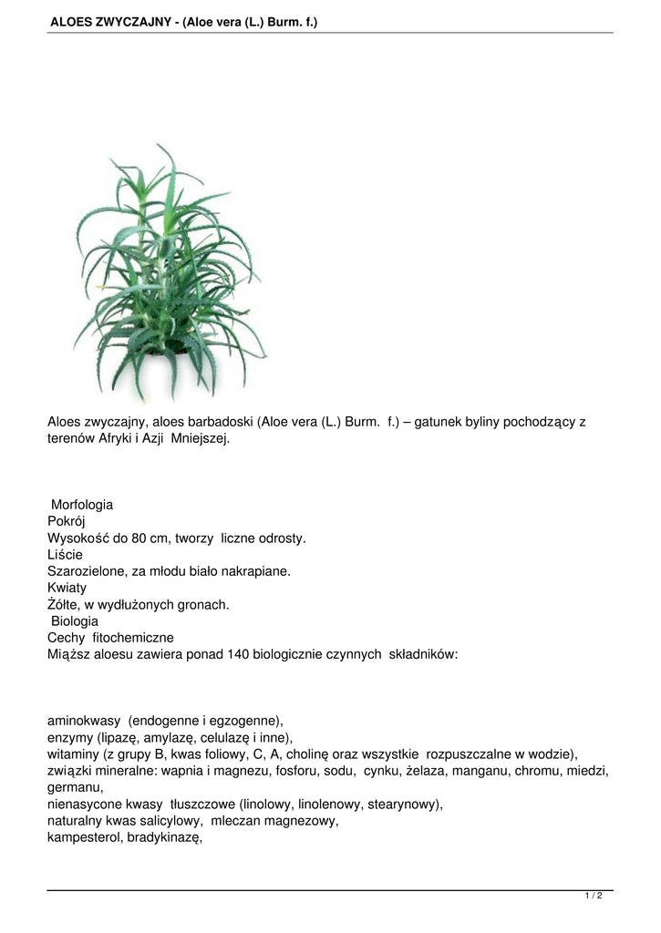 ALOES ZWYCZAJNY - (Aloe vera (L.) Burm. f.)
