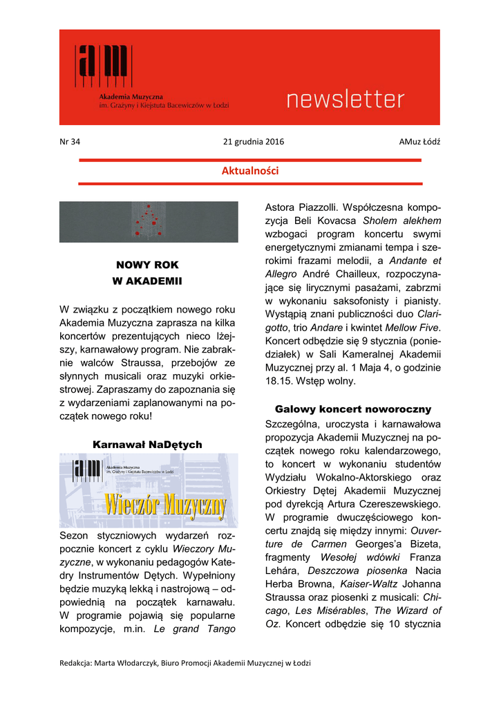 Aktualności - Akademia Muzyczna w Łodzi