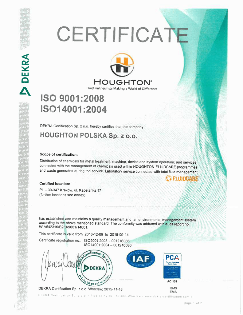 DEKRA Certification Sp. z o.o., Wroclaw, 2016-12-09