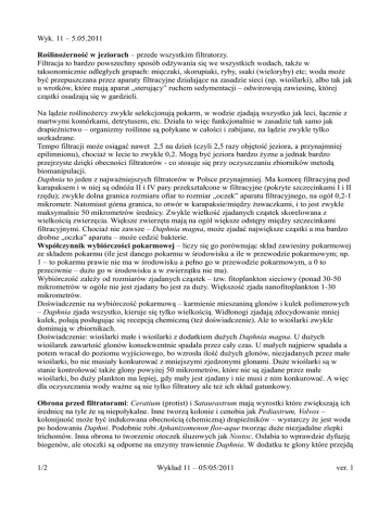 Wyk. 11 – 5.05.2011 Roślinożerność w jeziorach