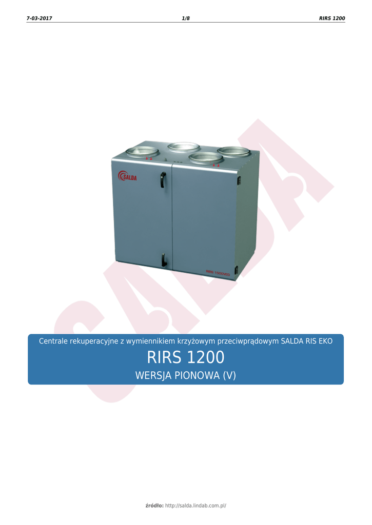 RIRS 1200 - Centrale wentylacyjne SALDA