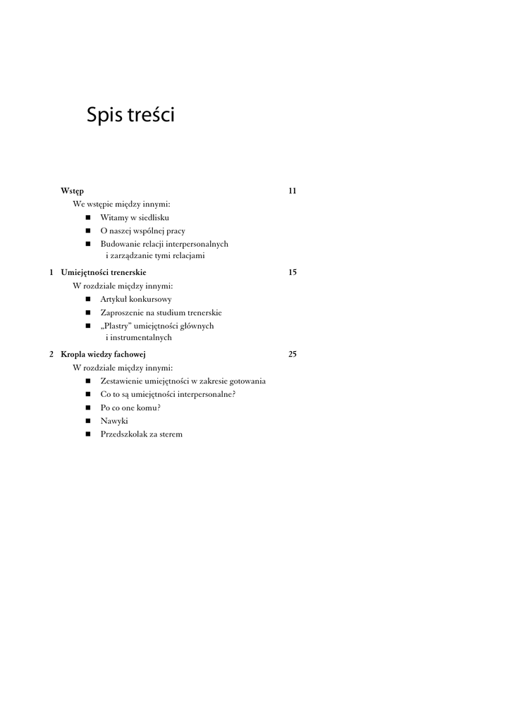 Spis treści 5 Spis treści Wstęp We wstępie między innymi: Witamy w siedlisku O naszej wspólnej pracy Budowanie relacji interpersonalnych i zarządzanie tymi relacjami 11 1 Umiejętności trenerskie W rozdziale między innymi: Artykuł konkursowy Zaproszenie na studium trenerskie „Plastry” umiejętności głównych i instrumentalnych 15 2 Kropla wiedzy fachowej W rozdziale między innymi: Zestawienie umiejętności w zakresie gotowania Co to są umiejętności interpersonalne? Po co one komu? Nawyki Przedszkolak za sterem 25 6 Profesjonalny szef — fachowiec, mentor, trener, negocjator i przywódca w jednej osobie 3 Sprzedawanie W rozdziale między innymi: Czy szef musi umieć sprzedawać? Co sprzedajesz, szefie? Wreszcie trafna definicja sprzedawania Model pelargonii Zamknij się! 37 4 Kupowanie W rozdziale między innymi: Co to jest kupowanie? Suk: to jest to! Koło kupowania Co musisz zrobić, aby sprzedać zegary? Co musisz zrobić, aby kupić zegary? 51 5 Wpływ W rozdziale między innymi: Stuprocentowy wpływ na syna Emocje czy zachowania? Stany wewnętrzne i przekonania Każdy czuje innych po swojemu Wpływ zerowy 63 6 Sklep menedżerski W rozdziale między innymi: Rynkowa teoria kierowania ludźmi Popyt, podaż Lejki potrzeb Potrzeba miłości w fabryce Waluta w relacjach interpersonalnych 77 Spis treści 7 Przywództwo szefa W rozdziale między innymi: Najkrótszy kurs przywództwa w Europie Teoria Babci Kto to jest dziadek? Charyzma: czy można ją mieć? Przywódczy styl prowadzenia szkoleń 7 87 8 Ociupinka fizyki jądrowej W rozdziale między innymi: Lot przez 1000 lat świetlnych Co się dzieje, szefie, w czasie lotu? Nawigacja powrotna Reguła silnika spalinowego Droga życia: od A do B 103 9 Show szefa, czyli prowadzenie motywacyjnych odpraw i narad W rozdziale między innymi: Dobre pytania Najtrudniejsza (?) umiejętność Cele narad Zły szef – dobry szef Narzędzia dobrego szefa Czynności szczegółowe 117 10 Umiejętność prowadzenia prezentacji publicznych W rozdziale między innymi: Znów najtrudniejsza (?) umiejętność Procedura sekunda po sekundzie Wygłoś toast Autoprezentacja 149 8 Profesjonalny szef — fachowiec, mentor, trener, negocjator i przywódca w jednej osobie 11 Pochwała konfliktu W rozdziale między innymi: Co to jest konflikt? Konflikt a negocjacje Albo pokochasz konflikt, albo już poległeś Narzędzia radzenia sobie z sytuacjami konfliktowymi Obrona przed manipulacją Zabójcze techniki 159 Zakończenie W zakończeniu między innymi: Zadanie finałowe „Nie tak łatwo zabić szefa” 187 Dodatki A Tabela umiejętności instrumentalnych w zakresie komunikowania interpersonalnego B Program szkoleniowy — uzyskanie certyfikatu trenerskiego C Literatura 191 193 203 207 9 Show szefa, czyli prowadzenie motywacyjnych odpraw i narad W rozdziale między innymi: Dobre pytania Najtrudniejsza (?) umiejętność Cele narad Zły szef – dobry szef Narzędzia dobrego szefa Czynności szczegółowe 118 Profesjonalny szef — fachowiec, mentor, trener, negocjator i przywódca w jednej osobie Z budowanie złych relacji z innymi ludźmi jest upiornie łatwe. Odwrotnie zaś — odwrotnie. Relacje — to materia nad wyraz delikatna. Krucha. Łatwa do zniszczenia. Gdybyśmy mieli spotkać się na chwilę — w jednym z naszych pomieszczeń w siedlisku — aby przeprowadzić szkolenie o tym, jak skutecznie niszczyć stosunki międzyludzkie, to potrzebowalibyśmy na to piętnaście minut. Z profesjonalną wprawą i ogromnym doświadczeniem poobrażalibyśmy wszystkich wokół, i można byłoby rozjechać się do domów. Proces odwrotny natomiast wymaga wprawy, wiedzy, chęci i — umiejętności. Nie ulega kwestii, że jednym z ważniejszych obszarów działania szefa są narady, odprawy, rozliczenia i prezentacje — które on sam musi prowadzić. Te imprezy spędzają nam, pryncypałom, sen z oczu, uprzykrzają życie, powodują zgagę, frustracje i bezsenność. Szczególnie wiele emocji dostarczają nam spotkania, które — jak przewidujemy — nie obędą się bez awantury. Nie wiedząc, jak się potoczą, a zatem i jak się skończą, odczuwamy niesmak, obrzydzenie i wściekłość. Praktyka bywa taka, że wielu uważa się za doświadczonych szefów, którzy narady prowadzą dynamicznie, przemówienia wygłaszają krótkie i zdecydowane, wnioski wyciągają jedynie trafne, a zadania dzielą sprawiedliwie. No i — takie „coś” realizują z marszu. Wieloletnie doświadczenie, a więc i nieustanny trening, pozwala (?) na takie działania. Trening bowiem czyni mistrza, ha! Zaiste to wspaniały obraz wysokiego poczucia własnej wartości. Inaczej mówiąc, dobrze jest o sobie myśleć pozytywnie. Zatem jeśli tak jest, to odprawom nie poświęcamy zbyt wiele uwagi. Do tego — co jest powszechnym alibi — nie mamy czasu na drobiazgi. Czasu nie mamy! Notatki, które przygotowujemy, zawierają suche fakty. O komentarze martwić się nie musimy — dodamy je w swoim czasie, posłużywszy się wrodzoną błyskotliwością, inteligencją i przebogatym zasobem słów. Show szefa, czyli prowadzenie motywacyjnych odpraw i narad 119 Mamy też inne wyjaśnienie: tak się jakoś dzisiaj porobiło, że procesy zarządzania uległy skróceniu, tempo jest ogromne, komunikacja musi być zwięzła i dosadna. Poza tym i tak jest nieźle, że w ogóle spotykamy się ze swoimi ludźmi, którzy — niech to zostanie w naszym gronie — mogliby to wszystko dostać w poczcie mailowej; i niekiedy z tej formy korzystamy, z ulgą odhaczając cotygodniowy apel grozy. Przyznam się, że ten opis dotyczy mojej byłej osoby. Państwa, oczywiście, nie dotyka on w najmniejszym nawet stopniu! Gdzieżbym śmiał tak oto splugawić nieskazitelny obraz idealnego przewodniczącego! W pewnej chwili swojego życia, którego znaczną część spędziłem w roli szefa, doszedłem do wniosku, że odprawy, nasiadówki czy spotkania rozliczeniowe powinienem kiedyś obejrzeć i prze