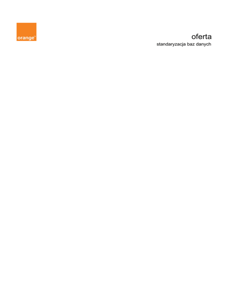 oferta standaryzacja baz danych Spis treści 1. WSTĘP ........................................................................................................................................ 3 2. DEFINICJE I SKRÓTY ................................................................................................................ 3 3. PRZEDMIOT OFERTY ................................................................................................................ 4 4. WARUNKI DOSTARCZENIA USŁUG SBD ................................................................................ 6 5. ODPOWIEDZIALNOŚĆ STRON ................................................................................................. 7 6. WARUNKI PŁATNOŚCI .............................................................................................................. 7 7. OKRES WAŻNOŚCI OFERTY .................................................................................................... 8 8. ZAŁĄCZNIKI ................................................................................................................................ 8 2 1. Wstęp Niniejszy dokument stanowi ofertę („Oferta”) standaryzacji Baz Danych na potrzeby zasilania PLI CBD przez Przedsiębiorcę Telekomunikacyjnego, zgodnie z wymogami Prezesa Urzędu Komunikacji Elektronicznej opisanymi w dokumencie „Produkt nr 009, 010 Specyfikacja zakresu, formatu, interfejsu oraz zasad przekazywania danych adresowych i lokalizacyjnych przez Dostawców usług telekomunikacyjnych, Operatorów telekomunikacyjnych sieci ruchomych i stacjonarnych a PLI CBD” opublikowanym przez dostawcę PLI CBD w dniu 29 grudnia 2010 r. Warunkiem skorzystania z oferty jest zawarcie przez Przedsiębiorcę telekomunikacyjnego umowy o Standaryzacji Baz Danych („Umowa o Standaryzacji Baz Danych”). Niniejszy dokument nie stanowi oferty w rozumieniu art. 66 Kodeksu cywilnego i jego akceptacja przez Przedsiębiorcę telekomunikacyjnego nie prowadzi do powstania stosunku umownego pomiędzy Przedsiębiorcą telekomunikacyjnym a OPL. 2. Definicje i skróty 1. W niniejszej Ofercie, jeżeli nie zaznaczono inaczej, stosowane są definicje zamieszczone w SOR. 2. Dla potrzeb niniejszej Oferty przyjmuje się następujące definicje: Abonent – osoba fizyczna i prawna, która podpisała z Przedsiębiorcą telekomunikacyjnym Umowę abonencką, Baza danych – baza danych PT obejmująca dane jego Abonentów, przekazana do OPL do standaryzacji, Delta – liczba rekordów, które uległy zmianie w danej Bazie danych, w porównaniu do ostatniej Bazy danych przekazanej OPL, Eliminacja błędów - zmiana w rekordzie, która odbywa się na podstawie algorytmów opracowanych i rozwijanych w zależności od bieżących potrzeb oraz możliwość dostosowania funkcji standaryzatora do indywidualnych wymagań Bazy danych PT, Klient biznesowy – Abonent będący osobą prawną, PLI CBD – Platforma Lokalizacyjno Informacyjna z Centralną Bazą Danych – system UKE stworzony zgodnie z wymogami art.78 ust 7 Ustawy Prawo Telekomunikacyjne z dnia 16 lipca 2004 r., Przedsiębiorca telekomunikacyjny (PT) – przedsiębiorca lub inny podmiot, nie będący OPL, uprawniony do wykonywania działalności gospodarczej na podstawie odrębnych przepisów, który wykonuje działalność gospodarczą polegającą na dostarczaniu sieci telekomunikacyjnych lub świadczeniu usług telekomunikacyjnych, Siła Wyższa - zdarzenie zewnętrzne o charakterze nadzwyczajnym niezależne od strony, któremu nie można zapobiec przy dołożeniu najwyższej staranności, a w szczególności: wojna a w tym: wojna domowa, zamieszki, akty sabotażu, rozruchy, 3 katastrofy naturalne np. burze, huragany, trzęsienia ziemi, powodzie. Strony – Przedsiębiorca telekomunikacyjny i OPL, OPL – Orange Polska S.A., Umowa abonencka – umowa o świadczenie usług telekomunikacyjnych zawarta pomiędzy Przedsiębiorcą telekomunikacyjnym i Abonentem, SBD – usługa Standaryzacji Baz Danych, SOR – „Oferta ramowa określająca ramowe warunki dostępu telekomunikacyjnego w zakresie rozpoczynania i zakańczania połączeń, hurtowego dostępu do sieci stacjonarnej OPL, dostępu do łączy abonenckich w sposób zapewniający dostęp pełny lub współdzielony, dostępu do łączy abonenckich poprzez węzły sieci telekomunikacyjnej na potrzeby sprzedaży usług szerokopasmowej transmisji danych”, obowiązująca w terminie obowiązywania niniejszej oferty, System TERYT - Krajowy Rejestr Urzędowy Podziału Terytorialnego Kraju, Standaryzacja Baz danych (SBD) – usługa świadczona przez OPL na rzecz Przedsiębiorcy telekomunikacyjnego polegająca na czyszczeniu, segmentacji oraz uzupełnianiu przekazywanej cyklicznie bazy danych numerów PT na potrzeby oraz zgodnie z wymaganiami aktualizacji PLI CBD. Standaryzacja Baz Danych będzie dokonywana okresowo, w cyklach ustalonych przez Strony, Standard rekordu – rekord w Bazie danych w formacie i o zawartości zgodne z wymaganiami PLI CBD opisanymi w dokumencie „„Produkt nr 009, 010 Specyfikacja zakresu, formatu, interfejsu oraz zasad przekazywania danych adresowych i lokalizacyjnych przez Dostawców usług telekomunikacyjnych, Operatorów telekomunikacyjnych sieci ruchomych i stacjonarnych a PLI CBD”” opublikowanym przez dostawcę PLI CBD w dniu 29 grudnia 2010 r. 3. Przedmiot Oferty Przedmiotem Oferty jest świadczenie przez OPL na rzecz Przedsiębiorcy telekomunikacyjnego, na warunkach niniejszej Oferty, następujących usług SBD: 3.1 Usługi podstawowe: 3.1.1 standaryzacja i czyszczenie zapisów w zakresie danych adresowych, w tym: weryfikacja i korekta nazw ulic, miejscowości, gmin, powiatów, województw, PNA, identyfikatorów TERYT, uzupełnienie brakujących części adresów: gmin, powiatów, województw, PNA, identyfikatorów TERYT, ujednolicanie różnorodnych zapisów tych samych danych adresowych do zapisu zestandaryzowanego, standaryzacja adresów przeprowadzana