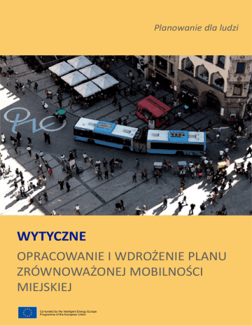 Pianificare per le persone Planowanie dla ludzi ! ! !! ! WYTYCZNE ! ! OPRACOWANIE I WDROŻENIE PLANU ! ZRÓWNOWAŻONEJ M OBILNOŚCI ! ! MIEJSKIEJ ! Co-funded by the Intelligent Energy Europe Programme of the European Union ! Marzec 2014 ! Ten dokument został przygotowany i przetłumaczony przez Regionalne Centrum Ekologiczne w ramach Akronim Projektu BUMP; hGp://www.bump-‐mobility.eu/ na podstawie dokumentu ‘Wytyczne. Opracowanie i Wdrożenie Planu Zrównoważonej Mobilności Miejskiej', wersja Styczeń 2014 (poprawiony wstęp), przygotowany dla Komisji Europejskiej, pozostaje jedyną uznaną wersją. Komisja nie ponosi odpowiedzialności za dokładność przetłumaczonego dokumentu ani za sposób wykorzystania zawartych w nim informacji. ! Więcej informacji ! Europejska PlaAorma dotycząca Planów Zrównoważonej Mobilności Miejskiej www.mobilityplans.eu E-‐mail: [email protected] ! Komisja Europejska Generalny Dyrektoriat ds. Mobilności i Transportu Sekcja C.1 – Czysty transport i zrównoważona mobilność miejska Ulica J.-‐A. Demot, 24-‐28 B-‐1040 Bruksela ! Niniejszy dokument został przygotowany na zlecenie Komisji Europejskiej, jednakże odzwierciedla on jedynie stanowisko autorów, a Komisja Europejska nie ponosi odpowiedzialności za sposób wykorzystania zawartych w nim informacji. ! © Unia Europejska, 2013. ! ! Kontrakt ELTISplus, EACI/IEE/2009/05/S12.558822 Tytuł Wytyczne. Opracowanie i wdrożenie Planu Zrównoważonej Mobilności Miejskiej Wersja Styczeń 2014 (poprawiony wstęp) Autorzy Frank Wefering, Siegfried Rupprecht, Sebasman Bührmann, Susanne Böhler-‐Baedeker Rupprecht Consult – Forschung und Beratung GmbH Email: info@rupprecht-‐consult.eu www.rupprecht-‐consult.eu Wkład w zakresie studiów przypadku i narzędzi BKK Centre for Budapest Transport: László Sándor Kerényi; Centro -‐ West Midlands Integrated Transport Authority: Steven Keeley; City of Helsinki: Meue Granberg, Johanna Vilkuna, Sakari Saarinen; Environmental Studies Centre, Vitoria-‐Gasteiz City Council: Juan Carlos Escudero, María de Sanmago; European Federamon of Inland Ports: Isabelle Ryckbost; Inland Navigamon Europe: Karin de Schepper; Insmtut d’Estudis Territorials, Barcelona: Kersmn Burckhart; Lund University: Tom Rye; Mobiel 21: Sarah Martens, Jan Chrismaens; Regional Environmental Center for Central and Eastern Europe: Gábor Heves; Rupprecht Consult: Wolfgang Backhaus, Sebasman Bührmann, Michael Laubenheimer, Miriam Lindenau, Siegfried Rupprecht, Patrick Vanegmond, Frank Wefering, Gabi Wegeler; Stockholm Environment Insmtute: John Forrester; TRT Trasporm e Territorio: Simone Bosey, Patrizia Malgieri, Cosimo Chiffi. Kontrola jakości Anthony D May, Insmtute for Transport Studies / University of Leeds; Peter Vansevenant, Head of Transport Department, City of Gent. Układ FGM-‐AMOR Zdjęcie na okładce www.elms.org / Harry Schiffer WYTYCZNE – OPRACOWANIE I WDROŻENIE PLANU ZRÓWNOWAŻONEJ MOBILNOŚCI MIEJSKIEJ 2 INDICE ! ZAWARTOŚĆ ! ! ZAWARTOŚĆ ................................................................................................................................................................3 WSTĘP ..........................................................................................................................................................................4 CZĘŚĆ I -‐ WPROWADZENIE ...........................................................................................................................................5 CO TO JEST PLAN ZRÓWNOWAŻONEJ MOBILNOŚCI MIEJSKIEJ? .................................................................................7 KORZYŚCI ...................................................................................................................................................................10 JAK POWSTAŁY NINIEJSZE WYTYCZNE ........................................................................................................................12 CZĘŚĆ II – PROCES ......................................................................................................................................................13 KROK 1: OKREŚLENIE WŁASNEGO POTENCJAŁU DLA SKUTECZNEJ REALIZACJI PLANU ZRÓWNOWAŻONEJ MOBILNOŚCI MIEJSKIEJ ............................................................................................................................................16 KROK 2: ZDEFINIOWANIE PROCESU ROZWOJU I ZAKRESU PLANU ...........................................................................32 KROK 3: ANALIZA SYTUACJI I OPRACOWANIE SCENARIUSZY ...................................................................................42 KROK 4: OKREŚLENIE WSPÓLNEJ WIZJI ......................................................................................................................50 KROK 5: OKREŚLENIE PRIORYTETÓW I WYMIERNYCH CELÓW ...................................................................................56 KROK 6: OPRACOWANIE EFEKTYWNYCH ZESTAWÓW DZIAŁAŃ ................................................................................61 KROK 7: UZGODNIENIE ZAKRESÓW ODPOWIEDZIALNOŚCI ORAZ ALOKACJA BUDŻETU ..........................................71 KROK 8: ZORGANIZOWANIE SYSTEMU MONITORINGU I OCENY ..............................................................................74 KROK 9: PRZYJĘCIE PLANU ZRÓWNOWAŻONEJ MOBILNOŚCI MIEJSKIEJ ...................................................................78 KROK 10: ZAPEWNIENIE WŁAŚCIWEGO ZARZĄDZANIA I KOMUNIKACJI (PODCZAS WDRAŻANIA PLANU) ................82 KROK 11 .....................................................................................................................................................................89 Aneks A: Glosariusz ....................................................................................................................................................93 Aneks B: Lista 