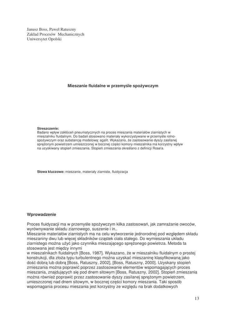 Janusz Boss, Paweł Ratuszny Zakład Procesów Mechanicznych
