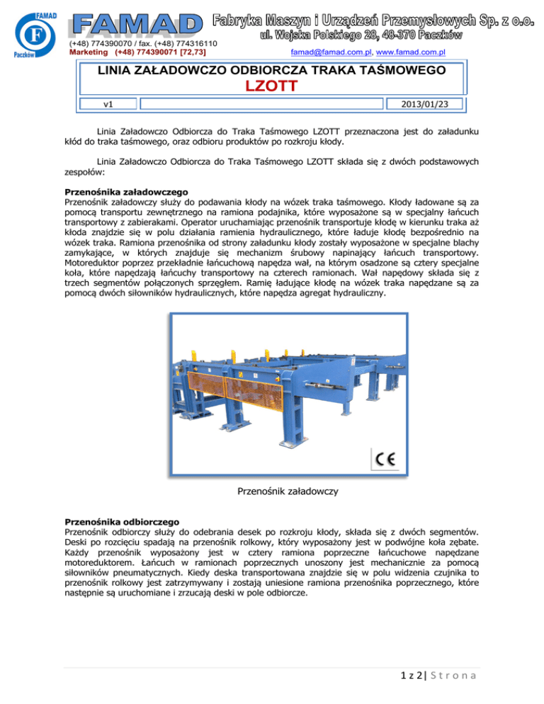 Specyfikacja - Famad Fabryka Maszyn i Urządzeń przemysłowych