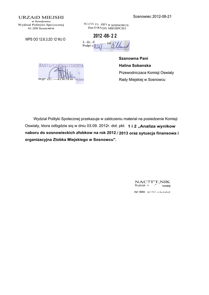 naboru do sosnowieckich zfobkow na rok 2012 / 2013 oraz sytuacja finansowa i