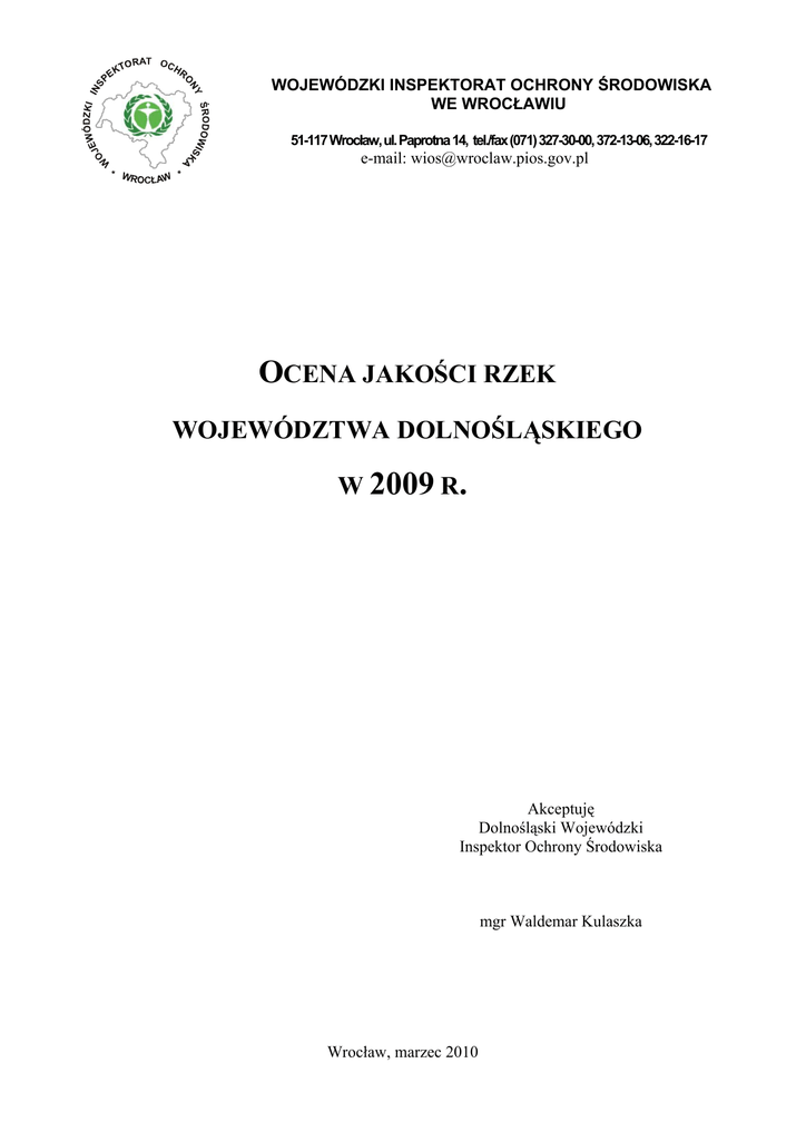 W 2009 R. - Wojewódzki Inspektorat Ochrony Środowiska we