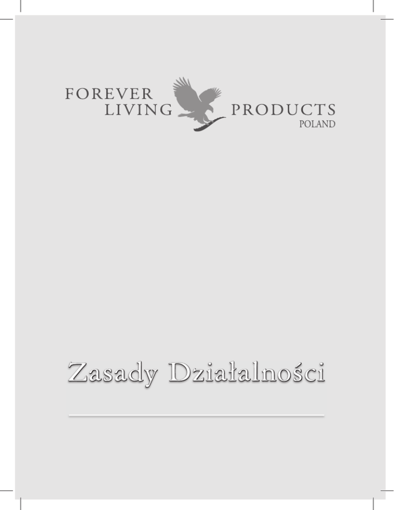 Zasady Dzia∏alnoÊci SPIS TREÂCI 1. 2. 3. 4. 5. 6. 7. 8. 9. 10. 11. 12. 13. 14. 15. 16. Wprowadzenie Podstawowe poj´cia Gwarancje i zwrot produktów Schemat Premii i Plan Marketingowy Premia Lidera Eagle Manager Stanowiska Managerskie Gem Managerowie Premia Gem Bonus Program Motywacyjny Super Rally FLP Status Managera i Rekwalifikacje Manager Wst´pujàcy Manager Transferowany Wymogi aktywnoÊci Procedury rekwalifikacji Responsoring Zamawianie produktów Wymogi prawne Bycie Niezale˝nym Dystrybutorem Zasady Dzia∏alnoÊci FLP Poland Rozwiàzanie Umowy Dystrybutorskiej przez Firm´ Rozwiàzywanie sporów Rozwiàzanie Umowy Dystrybutorskiej przez Dystrybutora Wa˝noÊç umów Przeniesienia praw dystrybutorskich w przypadku Êmierci Przeniesienia praw dystrybutorskich w przypadku rozwodu Polityka dotyczàca Internetu Bł´dy lub pytania Umowa poufnoÊci i tajnoÊci Dalsze klauzule restrykcyjne Terminy Wytyczne dotyczàce reklam i promocji Przep∏yw informacji Sponsoring mi´dzynarodowy 1. WPROWADZENIE (a) Firmy Forever Living Products (FLP) sà unikalne w realizacji swojej idei, która zach´cai wspiera u˝ywanie oraz sprzeda˝ detalicznà ich produktów poprzez niezale˝nych Dystrybutorów na całym Êwiecie. FLP to grupa powiàzanych ze sobà firm, z Dystrybutorami sprzedajàcymi produkty FLP na ca∏ym Êwiecie. Wy∏àcznym importerem produktów FLP na rynek polski jestForever Living Products Poland Sp. z o.o. (FLPP, FLP Poland, Firm(a). FLP zapewnia swoim Dystrybutorom najwy˝szej jakoÊci produkty, pomoc personelu oraz Plan Marketingowy. FLP oferuje konsumentom i Dystrybutorom szans´ na popraw´ jakoÊci ˝ycia dzi´ki produktom oraz równy dost´p do udzia∏u w sprzeda˝y i wynikajàcychz tego przywilejów, dla wszystkich, którzy gotowi sà przestrzegaç opisanych poni˝ej zasad.W przeciwieƒstwie do oferty wi´kszoÊci przedsi´wzi´ç biznesowych, uczestnicy programu FLP nie stajà przed finansowym ryzykiem, jako ˝e Firma nie wymaga wielkich nak∏adów inwestycyjnych oraz prowadzi polityk´ zwrotu pieni´dzy. (b) Nasza Firma nie reprezentuje stanowiska, ˝e Dystrybutor mo˝e odnieÊç finansowy sukces bez w∏asnego wk∏adu pracy lub polegajàc wy∏àcznie na wysi∏kach innych osób. Wynagrodzenie zgodne z Planem Marketingowym Firmy oparte jest na osiàganej sprzeda˝y produktów FLP.Dystrybutor jest niezale˝nym wspó∏pracownikiem firmy, którego sukces lub pora˝ka zale˝à wy∏àcznie od jego osobistych wysi∏ków. (c) FLP ma za sobà d∏ugà histori´ sukcesu. Podstawowym celem Planu Marketingowego jest promowanie sprzeda˝y najwy˝szej jakoÊci produktów Firmy klientom detalicznym. G∏ównymzadaniem Dystrybutorów jest budowa struktury sprzeda˝y, aby promowaç wÊród klientówdetalicznych zakup i korzystanie z produktów Firmy. (d) Niezale˝ni Dystrybutorzy, bez wzgl´du na pozycj´ zajmowanà w Planie Marketingowym, zach´cani sà do comiesi´cznej sprzeda˝y detalicznej i prowadzenia dokumentacji owej sprzeda˝y. (e) Odnoszàcy sukcesy Dystrybutorzy zdobywajà bie˝àce informacje o rynku uczestniczàc w spotkaniach szkoleniowych, utrzymujàc swojà grup´ klientów detalicznych i sponsorujàc innych, by prowadzili sprzeda˝ detalicznà. 2. PODSTAWOWE POJ¢CIA 2.1 „Klient detaliczny” to osoba kupujàca wyrób Firmy od Dystrybutora FLPP wy∏àcznie na u˝ytek w∏asny (nie do odsprzeda˝y). 2.2 „Punkt kartonowy” (pk.) to jednostka miary wartoÊci produktów, stanowiàca podstaw´ przyznawania Dystrybutorom awansów, premii, nagród i programów promocyjnych, jak to wynika z Planu Marketingowego. Jeden punkt kartonowy przyznawany jest zazakup od Firmy produktów FLP o wartoÊci 654,00 PLN w cenie hurtowej netto. 2.3 „Nowy Dystrybutor” to Dystrybutor, który nie osiàgnà∏ jeszcze pozycji Assistant Supervisora. 2.4 „Dystrybutor” to osoba pe∏noletnia, której Umowa Dystrybutora zosta∏a zatwierdzona przez Biuro G∏ówne FLP Poland. Dystrybutor kupuje produkty bezpoÊrednio od Firmy. 2.5 „Aktywny Dystrybutor” to Dystrybutor, który w ciàgu miesiàca kalendarzowego spe∏ni∏ wymóg aktywnoÊci 4 pk. w kraju zamieszkania. Na aktywnoÊç 4 pk. Dystrybutora sk∏adajà si´ wszystkie pk. pochodzàce z jego zakupów w∏asnych (minimum 1 pk.) oraz pk. z zakupów Nowych Dystrybutorów bezpoÊrednio zasponsorowanych przez Dystrybutora. Status Dystrybutora Aktywnego okreÊlany jest comiesi´cznie. Forever Living Products Poland 2 2.6 „Kraj zamieszkania” to kraj, w którym Dystrybutor mieszka przez wi´kszoÊç czasu. To w tym kraju Manager musi realizowaç wymogi uprawniajàce do kwalifikacji do premii grupoweji premii lidera we wszystkich innych krajach FLP. Kiedy Dystrybutor zmienia miejscezamieszkania, musi powiadomiç o tym swój dotychczasowy kraj zamieszkania, w celu dokonania zmiany adresu i przydzielenia nowego kraju zamieszkania. 2.7 „Firma operacyjna” to firma administrujàca, w ramach której jedno lub kilka paƒstwa korzysta z jednej bazy danych w celu kalkulowania awansów w poziomach sprzeda˝y, wypłat premii oraz kwalifikacji do programów promocyjnych. 3. GWARANCJE I ZWROT PRODUKTÓW 3.1 FLP gwarantuje swoim Dystrybutorom, ˝e jej produkty sà wolne od wad, a ich sk∏ad nieodbiega od deklarowanego. FLP Poland nie prowadzi sprzeda˝y ˝adnych produktów,o których wiadomo, ˝e mogà powodowaç niepo˝àdane skutki uboczne lub reakcje. 3.2 FLP Poland udziela gwarancji na produkty FLP, która obowiàzuje w okresie 30 dni od datyzakupu i dotyczy wy∏àcznie produktów punktowanych. Gwarancja nie obejmuje natomiastliteratury firmowej, tj. materia∏ów szkoleniowych, promocyjnych i reklamowych. Klienci detaliczni: 3.3 Klient detaliczny otrzymuje gwarancj´ 100% satysfakcji na zakupiony produkt FLP; gwarancja ta obowiàzuje w okresie 30 dni od daty zakupu. W okresie trwania gwarancji niezadowolony z zakupu klient ma prawo: (a) wymieniç produkt na taki sam bàdê (b) zwróciç produkt i otrzymaç zwrot pieni´dzy. 