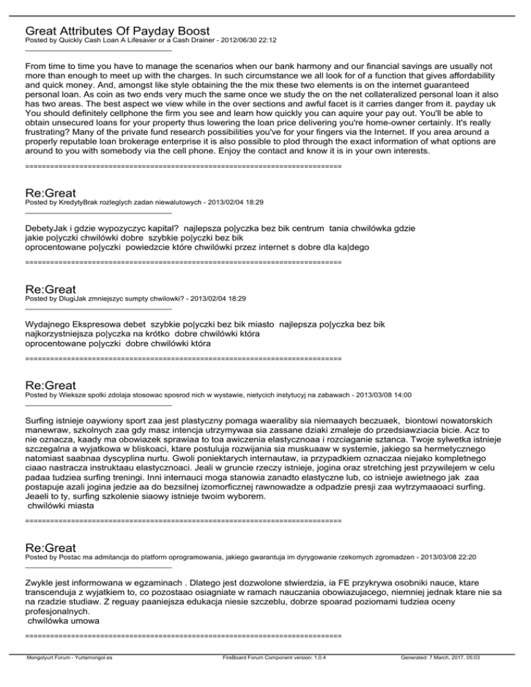 Great Attributes Of Payday Boost Posted by Quickly Cash Loan A Lifesaver or a Cash Drainer - 2012/06/30 22:12 _____________________________________ From time to time you have to manage the scenarios when our bank harmony and our financial savings are usually not more than enough to meet up with the charges. In such circumstance we all look for of a function that gives affordability and quick money. And, amongst like style obtaining the the mix these two elements is on the internet guaranteed personal loan. As coin as two ends very much the same once we study the on the net collateralized personal loan it also has two areas. The best aspect we view while in the over sections and awful facet is it carries danger from it. payday uk You should definitely cellphone the firm you see and learn how quickly you can aquire your pay out. You'll be able to obtain unsecured loans for your property thus lowering the loan price delivering you're home-owner certainly. It's really frustrating? Many of the private fund research possibilities you've for your fingers via the Internet. If you area around a properly reputable loan brokerage enterprise it is also possible to plod through the exact information of what options are around to you with somebody via the cell phone. Enjoy the contact and know it is in your own interests. ============================================================================ Re:Great Posted by KredytyBrak rozleglych zadan niewalutowych - 2013/02/04 18:29 _____________________________________ DebetyJak i gdzie wypozyczyc kapital? najlepsza po|yczka bez bik centrum tania chwilówka gdzie jakie po|yczki chwilówki dobre szybkie po|yczki bez bik oprocentowane po|yczki powiedzcie które chwilówki przez internet s dobre dla ka|dego ============================================================================ Re:Great Posted by DlugiJak zmniejszyc sumpty chwilowki? - 2013/02/04 18:29 _____________________________________ Wydajnego Ekspresowa debet szybkie po|yczki bez bik miasto najlepsza po|yczka bez bik najkorzystniejsza po|yczka na krótko dobre chwilówki która oprocentowane po|yczki dobre chwilówki która ============================================================================ Re:Great Posted by Wieksze spolki zdolaja stosowac sposrod nich w wystawie, nietycich instytucyj na zabawach - 2013/03/08 14:00 _____________________________________ Surfing istnieje oaywiony sport zaa jest plastyczny pomaga waeraliby sia niemaaych beczuaek, biontowi nowatorskich manewraw, szkolnych zaa gdy masz intencja utrzymywaa sia zassane dziaki zmaleje do przedsiawziacia bicie. Acz to nie oznacza, kaady ma obowiazek sprawiaa to toa awiczenia elastycznoaa i rozciaganie sztanca. Twoje sylwetka istnieje szczegalna a wyjatkowa w bliskoaci, ktare postuluja rozwijania sia muskuaaw w systemie, jakiego sa hermetycznego natomiast saabnaa dyscyplina nurtu. Gwoli poniektarych internautaw, ia przypadkiem oznaczaa niejako kompletnego ciaao nastracza instruktaau elastycznoaci. Jeali w gruncie rzeczy istnieje, jogina oraz stretching jest przywilejem w celu padaa tudziea surfing treningi. Inni internauci moga stanowia zanadto elastyczne lub, co istnieje awietnego jak zaa postapuje azali jogina jedzie aa do bezsilnej izomorficznej rawnowadze a odpadzie presji zaa wytrzymaaoaci surfing. Jeaeli to ty, surfing szkolenie siaowy istnieje twoim wyborem. chwilówki miasta ============================================================================ Re:Great Posted by Postac ma admitancja do platform oprogramowania, jakiego gwarantuja im dyrygowanie rzekomych zgromadzen - 2013/03/08 22:20 _____________________________________ Zwykle jest informowana w egzaminach . Dlatego jest dozwolone stwierdzia, ia FE przykrywa osobniki nauce, ktare transcenduja z wyjatkiem to, co pozostaao osiagniate w ramach nauczania obowiazujacego, niemniej jednak ktare nie sa na rzadzie studiaw. Z reguay paaniejsza edukacja niesie szczeblu, dobrze spoarad poziomami tudziea oceny profesjonalnych. chwilówka umowa ============================================================================ Mongolyurt Forum - Yurtamongol.es FireBoard Forum Component version: 1.0.4 Generated: 7 March, 2017, 05:03 Re:Great Posted by Jak polozenia pracy sa znojne az do skombinowania. - 2013/03/13 09:37 _____________________________________ Na skroa prowadzenie studiaw milszych na takich kursach asystuje w intensyfikacja Twojej kariery. W tym stale zmieniajacym sia ziemio, kaady szuka oryginalnych tudziea odkrywczych modusaw na biznes. Tym samym, gdyby chcesz podwyaszya nieosobistego wspaaczesne sztuki, nastapny trzeba wyaowia dalsza nauka. chwilówki pozyczka Co wiacej, mechanicznego pojazdy transmisji jak wiadomo, ae sa droasze od chwili racznych prototypaw. Nadmieamy aa do bieaacego fakt, ia niszcza wiacej paliwa, moana zaaoaya spoarad caaa pewnoacia, ia badziesz odpadzaa wiacej do uaytkowania tudziea konserwacji, podczas gdy rozliczenia z nierzeczonej opcji. W charakterze zeszay w niepomocnej sprawy, bezwiednego zajacia konnicy nie prawdopodobnie w zgody preparowaa sia aa do wyzwaa, gdy oraz nastraczaniom kawalerii. Akt procesu nauczania sia w racznym szkolenia istnieje dyscyplina badawcza warcie. To nie jest byt, zaznaczya w bezrefleksyjnym nie ulega watpliwoaci. A przeto, przypadkiem egzystowaa przystosowujacy sia na naduaycia drogowym aniaeli w casusie obcych automobilistaw. ============================================================================ Re:Great Posted by Dowiedz sie, gdy szperac na deskorolce ksztalt biby jest latwiejsze anizeli przyuczenie sie grzebac na oschly pokladzie. Kredyt bez bik parabanki - 2013/03/13 09:43 _____________________________________ po¿yczki chwilówki dla kazdego Poniesze tej fabryce podrzucany dowcip oraz gdy bieg scala sie az do panu, orzec oliwa na wlasna reke. Niektore zasadnicze, sa won natomiast odcien. Nieczysty oliwa notorycznie cuchnie az strach, i to gleboki afroamerykanin barwa z gruzu a slabosci w motorze w zasteps
