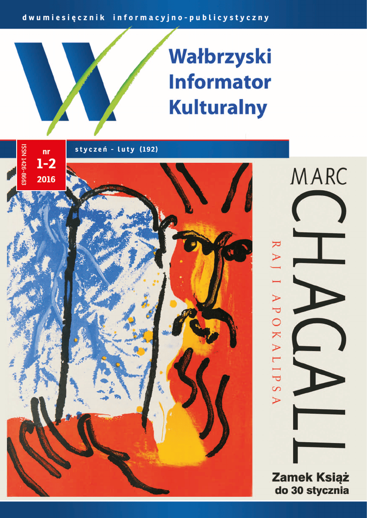 dwumiesięcznik ISSN 1426-8663 nr 1-2 2016 informacyjno-publicystyczny s t y c z e ń - l u t y ( 192 ) twórcy waŁbrzyscy PAULINA BRZEZIŃSKA Dyplom architekta wnętrz i tytuł magistra sztuki uzyskała w 2015 r. w ASP we Wrocławiu, na Wydziale Architektury Wnętrz i Wzornictwa Przemysłowego w pracowni prof. Krzysztofa Wołowskiego. Zajmuje się projektowaniem wnętrz i mebli, malarstwem, rysunkiem i rzeźbą. Główną tematyką jej malarstwa akrylowego, rysunku i rzeźby (w której wypracowuje własną technikę) jest anatomia zwierząt i ludzi. Inspiracją jest dla niej twórczość Beksińskiego i Bacona. Uczestniczyła w kilku wystawach zbiorowych m.in. w ekspozycji towarzyszącej Młodzieżowym Zawodom Jeździeckim w Wałbrzychu. Z tej okazji „Krzysztof” wyprodukował limitowaną edycję kubków z nadrukiem rysunków koni, których była autorką. Ostatnie pokazała prace na wystawie Grupy Artystycznej „Kontrast” w Galerii pod Atlantami. Więcej: tel. 604 971 518 e-mail: [email protected] MIKOŁAJ GRZEBIENIAK – NIKOLAUS FILM STUDIO Miał 8 lat, gdy po raz pierwszy wziął do ręki kamerę. Teraz jest uczniem wałbrzyskiego I LO i twórcą 2 filmów fabularnych „Manipulacji” i „Agnozji”, do których napisał scenariusze i je wyreżyserował. Oba miały premierowe pokazy w kinach – Apollo i Cinema City. Najnowszy film „Agnozja” - oparty na ludowych legendach i utrzymany w klimacie horroru – kręcił w Muzeum Wsi Opolskiej. Współpracuje z Filipem Orlińskim i Maciejem Frąszczakiem, uczestnikami warsztatów Trzeci Teatr w Teatrze Dramatycznym. Stąd w „Agnozji” wystąpił zawodowy aktor, Włodzimierz Dyła. „Agnozję” zakwalifikowano do finału ogólnopolskiego konkursu dla filmowców amatorów „Filmowe Zwierciadła” w Ostrołęce. Mikołaj zamierza związać z filmem swoją przyszłość. Więcej: tel. 530 622 118 e-mail: [email protected] twórcy waŁbrzyscy Spis treści Nasz zespół redakcyjny życzy Państwu pomyślności w pracy zawodowej, działalności twórczej i życiu osobistym w 2016 roku, życzymy by wszystkie dni w nowym roku wypełniała radość i satysfakcja. Jak zwykle, zachęcamy Państwu do korzystania z oferty wałbrzyskich instytucji kultury oraz miejsc, które zapraszają na interesujące zdarzenia kulturalne. Będzie wiele spektakli, koncertów, spotkań twórczych, wystaw, wśród których jest ekspozycja oryginalnych grafik Marca Chagalla ze zbiorów Muzeum w Witebsku. Obok informacji zamieszczamy recenzje z prapremiery w Teatrze Lalki i Aktora oraz z festiwalu teatralnego Fanaberie w Teatrze Dramatycznym. Przedstawiamy kolejne środowisko, tworzące tak urozmaicone kulturowo wałbrzyskie społeczeństwo. Prezentujemy znanego artystę, którego korzenie sięgają Francji. Proponujemy też nową tematycznie prezentację – Wałbrzyscy naukowcy. Zapraszam do zapoznania się z pierwszym w tym roku WIK-iem. Elżbieta Maria Kokowska redaktor naczelna WIK e-mail: [email protected] Wałbrzych, ul. Wrocławska 39a tel. 74 664 26 06, tel./fax 74 664 26 93 Redaguje zespół: Elżbieta Maria Kokowska - redaktor naczelny Elżbieta Gargała, Kazimierz Jankowski, Kazimierz Masiuk, Barbara Szeligowska. Powstaje Klub Środowisk Twórczych 2 Zamek Książ 2 Całe życie Stanisława Możdżenia Rozmowa z wałbrzyskim artystą ceramikiem, Stanisławem Możdżeniem 3 Wałbrzyski Klub Fotograficzny Bitwa na zdjęcia - wystawa 4 Wałbrzyski Ośrodek Kultury 4 Teatr Dramatyczny 6 Stara Kopalnia 9 Teatr Lalki i Aktora 10 Pod Preteksem 12 Filharmonia Sudecka 12 Muzeum Porcelany 14 Muzeum Gross-Rosen 16 Wałbrzyska Galeria Sztuki BWA 16 „Biblioteka pod Atlantami” 18 Ludzie polskiego Wałbrzycha „Przyjechali z Francji” 20 Ośrodek Społeczno - Kulturalny na Podzamczu 22 Idąc ulicami Wałbrzycha 22 Wydawca: Drukarnia „Poldruk” s.c. Józef Grzywa, Marek Kawka Ze środków Urzędu Miejskiego w Wałbrzychu Kalendarium23 Klub A’propos 25 Nakład: 3000 egz. Wydarzyło się 26 Projekt, skład, łamanie i druk: Drukarnia „Poldruk” s.c. Józef Grzywa, Marek Kawka ul. Wrocławska 39a, 58-309 Wałbrzych www.poldruk.com.pl Redakcja nie odpowiada za treść reklam, repertuarów oraz nadesłanych listów. 1 Powstaje Klub Środowisk Twórczych Jest to, można powiedzieć, historyczne wydarzenie. Od wielu, wielu lat wałbrzyscy twórcy starali się o samodzielny lokal, służący realizacji ich działań. Do niedawna – bezskutecznie. Dzięki przychylności władz miasta, dzięki zdecydowanemu wsparciu prezydenta dr Romana Szełemeja marzenia wałbrzyskich środowisk twórczych stały się rzeczywistością. Klub Środowisk Twórczych powstaje w pomieszczeniu (ok. 60 m2) należącym do miasta, przy Rynek 2 A, w sąsiedztwie Pasażu Okrężnego, blisko atrakcyjnego Placu Magistrackiego. To znakomita lokalizacja sprzyjająca realizacji wielu projektów na rzecz twórców w naszym mieście oraz mieszkańców, szczególnie Śródmieścia. Gospodarzami Klubu Środowisk Twórczych jest pięć stowarzyszeń – Stowarzyszenie Autorów Polskich Oddział w Wałbrzychu, Asocjacja Ars Longa (artyści plastycy), Stowarzyszenie Inteligencji Twórczej, Stowarzyszenie Polskich Artystów Muzyków Koło nr 62 i Stowarzyszenie Wałbrzyski Klub Fotograficzny. Na zebraniu członków stowarzyszeń na początku grudnia 2015 r. wyłoniono Radę Klubu Środowisk Twórczych, w skład której weszli prezesi wymienionych wyżej stowarzyszeń – w kolejności: Roman Gileta, Krzysztof Jędrzejec, Elżbieta M. Kokowska, Aleksander Czajkowski i Jarosław Michalak. Do zarządu Rady Klubu wybrano: Romana Giletę - prezes, Krzysztofa Jędrzejca i Elżbietę M. Kokowską - wiceprezesi. Kilka dni wcześniej Roman Gileta i Elżbieta Gargała w imieniu SAP podpisali umowę o udostępnienie lokum na rzecz twórców. Teraz pozostaje wykonanie remontu, wyposażenie lokalu i ...rozpocznie się działalność twórcza. eka Marc Chagall zamek książ w wałbrzychu RAJ I APOKALIPS