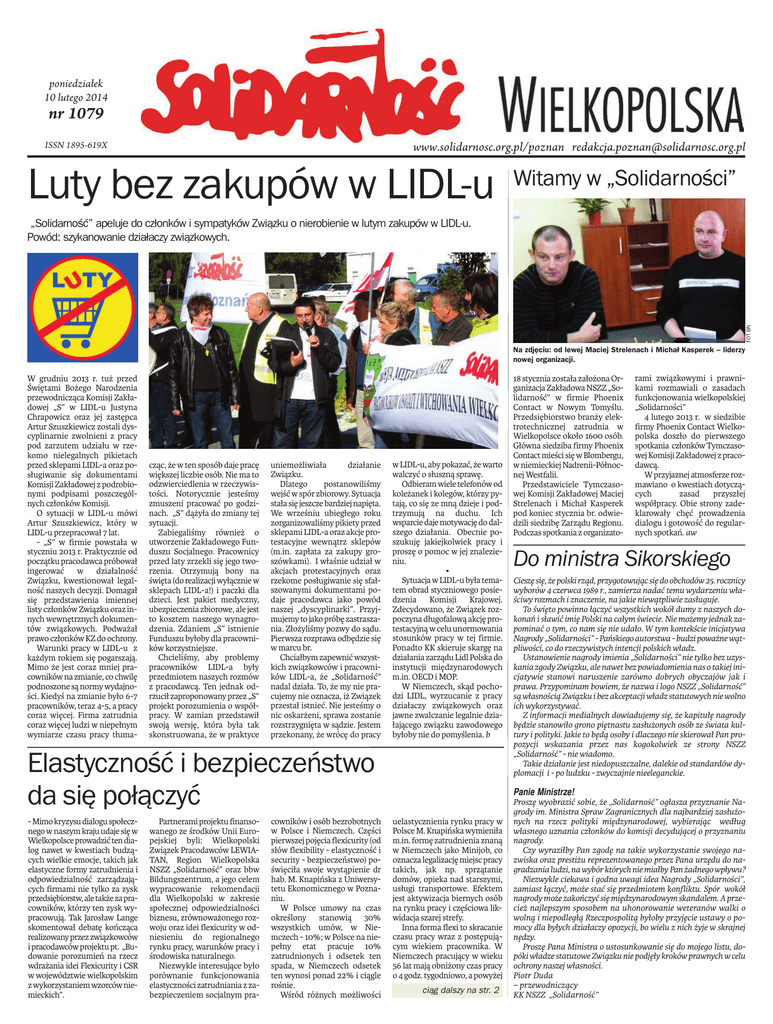 poniedziałek 10 lutego 2014 nr 1079 ISSN 1895-619X www.solidarnosc.org.pl/poznan [email protected] Luty bez zakupów w LIDL-u Witamy w „Solidarności” Fot bn „Solidarność” apeluje do członków i sympatyków Związku o nierobienie w lutym zakupów w LIDL-u. Powód: szykanowanie działaczy związkowych. Na zdjęciu: od lewej Maciej Strelenach i Michał Kasperek – liderzy nowej organizacji. W grudniu 2013 r. tuż przed Świętami Bożego Narodzenia przewodnicząca Komisji Zakładowej „S” w LIDL-u Justyna Chrapowicz oraz jej zastępca Artur Szuszkiewicz zostali dyscyplinarnie zwolnieni z pracy pod zarzutem udziału w rzekomo nielegalnych pikietach przed sklepami LIDL-a oraz posługiwanie się dokumentami Komisji Zakładowej z podrobionymi podpisami poszczególnych członków Komisji. O sytuacji w LIDL-u mówi Artur Szuszkiewicz, który w LIDL-u przepracował 7 lat. - „S” w firmie powstała w styczniu 2013 r. Praktycznie od początku pracodawca próbował ingerować w działalność Związku, kwestionował legalność naszych decyzji. Domagał się przedstawienia imiennej listy członków Związku oraz innych wewnętrznych dokumentów związkowych. Podważał prawo członków KZ do ochrony. Warunki pracy w LIDL-u z każdym rokiem się pogarszają. Mimo że jest coraz mniej pracowników na zmianie, co chwilę podnoszone są normy wydajności. Kiedyś na zmianie było 6-7 pracowników, teraz 4-5, a pracy coraz więcej. Firma zatrudnia coraz więcej ludzi w niepełnym wymiarze czasu pracy tłuma- cząc, że w ten sposób daje pracę większej liczbie osób. Nie ma to odzwierciedlenia w rzeczywistości. Notorycznie jesteśmy zmuszeni pracować po godzinach. „S” dążyła do zmiany tej sytuacji. Zabiegaliśmy również o utworzenie Zakładowego Funduszu Socjalnego. Pracownicy przed laty zrzekli się jego tworzenia. Otrzymują bony na święta (do realizacji wyłącznie w sklepach LIDL-a!) i paczki dla dzieci. Jest pakiet medyczny, ubezpieczenia zbiorowe, ale jest to kosztem naszego wynagrodzenia. Zdaniem „S” istnienie Funduszu byłoby dla pracowników korzystniejsze. Chcieliśmy, aby problemy pracowników LIDL-a były przedmiotem naszych rozmów z pracodawcą. Ten jednak odrzucił zaproponowany przez „S” projekt porozumienia o współpracy. W zamian przedstawił swoją wersję, która była tak skonstruowana, że w praktyce uniemożliwiała działanie Związku. Dlatego postanowiliśmy wejść w spór zbiorowy. Sytuacja stała się jeszcze bardziej napięta. We wrześniu ubiegłego roku zorganizowaliśmy pikiety przed sklepami LIDL-a oraz akcje protestacyjne wewnątrz sklepów (m.in. zapłata za zakupy groszówkami). I właśnie udział w akcjach protestacyjnych oraz rzekome posługiwanie się sfałszowanymi dokumentami podaje pracodawca jako powód naszej „dyscyplinarki”. Przyjmujemy to jako próbę zastraszania. Złożyliśmy pozwy do sądu. Pierwsza rozprawa odbędzie się w marcu br. Chciałbym zapewnić wszystkich związkowców i pracowników LIDL-a, że „Solidarność” nadal działa. To, że my nie pracujemy nie oznacza, iż Związek przestał istnieć. Nie jesteśmy o nic oskarżeni, sprawa zostanie rozstrzygnięta w sądzie. Jestem przekonany, że wrócę do pracy w LIDL-u, aby pokazać, że warto walczyć o słuszną sprawę. Odbieram wiele telefonów od koleżanek i kolegów, którzy pytają, co się ze mną dzieje i podtrzymują na duchu. Ich wsparcie daje motywację do dalszego działania. Obecnie poszukuję jakiejkolwiek pracy i proszę o pomoc w jej znalezieniu. • Sytuacja w LIDL-u była tematem obrad styczniowego posiedzenia Komisji Krajowej. Zdecydowano, że Związek rozpoczyna długofalową akcję protestacyjną w celu unormowania stosunków pracy w tej firmie. Ponadto KK skieruje skargę na działania zarządu Lidl Polska do instytucji międzynarodowych m.in. OECD i MOP. W Niemczech, skąd pochodzi LIDL, wyrzucanie z pracy działaczy związkowych oraz jawne zwalczanie legalnie działającego związku zawodowego byłoby nie do pomyślenia. b Elastyczność i bezpieczeństwo da się połączyć - Mimo kryzysu dialogu społecznego w naszym kraju udaje się w Wielkopolsce prowadzić ten dialog nawet w kwestiach budzących wielkie emocje, takich jak elastyczne formy zatrudnienia i odpowiedzialność zarządzających firmami nie tylko za zysk przedsiębiorstw, ale także za pracowników, którzy ten zysk wypracowują. Tak Jarosław Lange skomentował debatę kończąca realizowany przez związkowców i pracodawców projektu pt. „Budowanie porozumień na rzecz wdrażania idei Flexicurity i CSR w województwie wielkopolskim z wykorzystaniem wzorców niemieckich”. Partnerami projektu finansowanego ze środków Unii Europejskiej byli: Wielkopolski Związek Pracodawców LEWIATAN, Region Wielkopolska NSZZ „Solidarność” oraz bbw Bildungszentrum, a jego celem wypracowanie rekomendacji dla Wielkopolski w zakresie społecznej odpowiedzialności biznesu, zrównoważonego rozwoju oraz idei flexicurity w odniesieniu do regionalnego rynku pracy, warunków pracy i środowiska naturalnego. Niezwykle interesujące było porównanie funkcjonowania elastyczności zatrudniania z zabezpieczeniem socjalnym pra- cowników i osób bezrobotnych w Polsce i Niemczech. Części pierwszej pojęcia flexicurity (od słów flexibility - elastyczność i security - bezpieczeństwo) poświęciła swoje wystąpienie dr hab. M. Knapińska z Uniwersytetu Ekonomicznego w Poznaniu. W Polsce umowy na czas określony stanowią 30% wszystkich umów, w Niemczech - 10%; w Polsce na niepełny etat pracuje 10% zatrudnionych i odsetek ten spada, w Niemczech odsetek ten wynosi ponad 22% i ciągle rośnie. Wśród różnych możliwości 18 stycznia została założona Organizacja Zakładowa NSZZ „Solidarność” w firmie Phoenix Contact w Nowym Tomyślu. Przedsiębiorstwo branży elektrotechnicznej zatrudnia w Wielkopolsce około 1600 osób. Główna siedziba firmy Phoenix Conta
