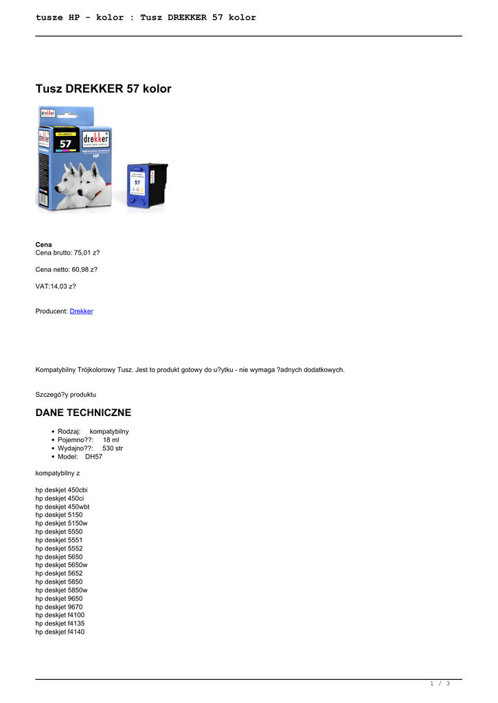 tusze HP - kolor : Tusz DREKKER 57 kolor