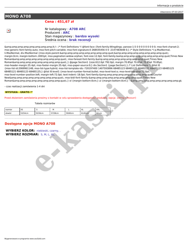 Przed złożeniem zamówienia prosimy o kontakt w celu sprawdzenia dostępności produktu. (opcja