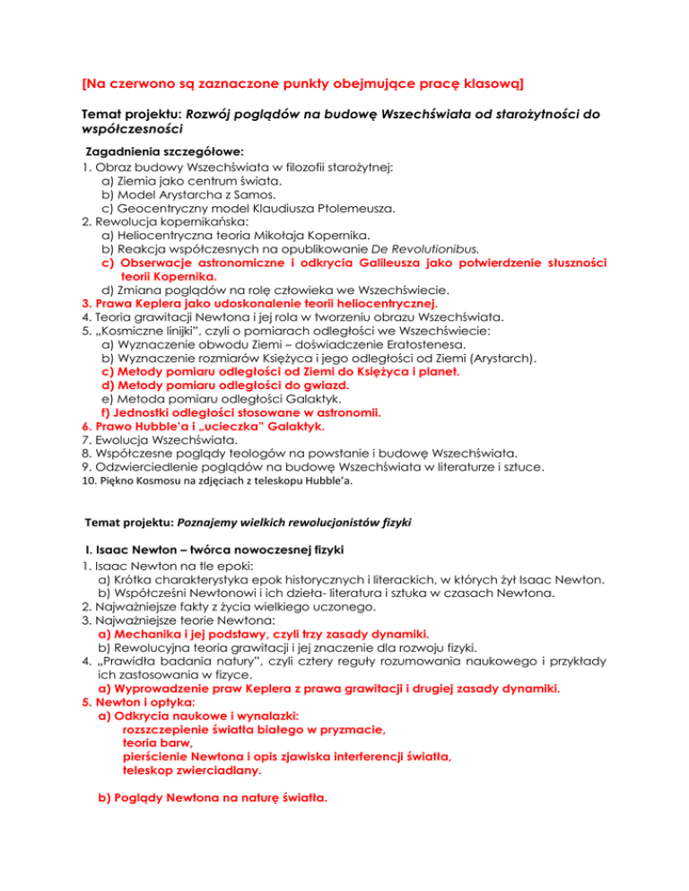 [Na czerwono są zaznaczone punkty obejmujące pracę klasową]