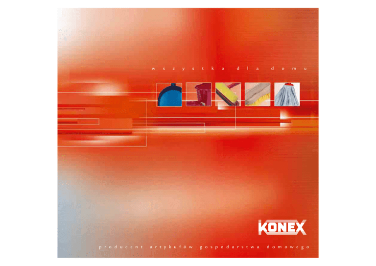 KONEX Sp. z o.o. z siedzibą w àodzi jest producentem i dystrybutorem plastikowych artykuáów gospodarstwa domowego na rynek krajowy i rynki zagraniczne. JesteĞmy firmą ze 100% udziaáem kapitaáu polskiego powstaáą w 1990 r. Obecnie w fabryce zatrudnionych jest 190 osób, miesiĊczna produkcja wynosi 3 miliona detali. Posiadamy najnowszej generacji park maszynowy, w skáad którego wchodzą w peáni zautomatyzowane maszyny szczotkarskie i wtryskarki oraz jedyną w Europie ĝrodkowo-Wschodniej zautomatyzowaną liniĊ do produkcji metalowych kijów do szczotek, powlekanych plastikiem. Strategicznym celem naszej firmy jest ciągáe wzbogacanie asortymentu produkowanych przez nas wyrobów, co w praktyce oznacza wprowadzenie do sprzedaĪy minimum dwudziestu wzorów rocznie. Bardzo stabilne i konkurencyjne ceny stanowią filar naszych sukcesów handlowych zarówno na rynku krajowym jak i zagranicznym. KONEX eksportuje swoje wyroby do Niemiec, Anglii, Holandii, Kanady, Buágarii, Francji, Finlandii, Norwegii, Sáowacji, Czech, Rosji, Biaáorusi, àotwy, Estoni i Ukrainy. O jakoĞci i rzetelnoĞci realizacji zamówieĔ Ğwiadczy fakt, iĪ od wielu lat wyroby nasze znajdują siĊ na póákach wiĊkszoĞci hipermarketów w Polsce i za granicą. Nasze doĞwiadczenie i dyspozycyjnoĞü zaáogi zapewniają doskonaáą jakoĞü produkowanych wyrobów oraz realizacjĊ wszystkich zamówieĔ w ciągu 48 godzin. W peáni profesjonalna obsáuga naszych Klientów odbywa siĊ poprzez sieü przedstawicieli handlowych w caáej Polsce. Nasza firma jest zarządzana zgodnie z normą PN-EN ISO 9001, czego dowodem jest posiadany od 2002r. Certyfikat JakoĞci. Zapraszamy do wspóápracy. Gwarantujemy 100% satysfakcji. buckets/Eimer/ȊȨȌȘȈ/vedrá/vČdra 4 mop sets/Mop Säzte/ȒȖȔȗȓȍȒȚȣ Ȍȓȧ țȉȖȘȒȐ “ǴȖȗ”/mop súpravy/mopy soupravy 6 mops/Mops/ȡȨȚȒȐ Ȍȓȧ ȗȖȌȔȍȚȈȕȐȧ/metly na zametanie/smetáky 9 metal handles/Stiele/ȟȍȘȍȕȒȐ/palice/tyþe a násady Konex co. Ltd. with residence in Lodz is the producer and distributor of plastic household articles at domestic and foreign markets. We are the company established in 1990 with 100% of Polish capital. Presently the factory employs 190 people, the monthly production amounts to 3 mln details. We possess the most modern stock of machines. Among others are: injection moulding machine, brushing machine and the only in the central and eastern Europe fully automated line for production of metal handles covered by plastic. Strategic goal of our company is continuous enrichment of assortment of produced goods what means in practice putting into sale minimum ten new models per year. Stable and competitive prices are the pillar of our trade success both at domestic and foreign market. Konex exports its products to Germany, England, Sweden, Holland, Canada, Bulgaria, France, Finland, Norway, Russia, Belorussia, Slovakia, Lithuania, Latvia, Estonia, Ukraine and occasionally to other countries. Punctuality of deliveries and the proper quality of our goods (quality control according to ISO 9000 norms) made that presently we have a wide body of constant foreign customers which is non stop joined by new contracting parties. Reliability of orders execution is proved by fact that for many years our products have been present at shelves of most hypermarkets in Poland and abroad. Our experience and disposality of staff ensure perfect quality of produced goods and execution of all orders within 48 hours at the territory of whole country. To satisfy our customers we created the chain of sale representatives whose the basic duty is furnishing with information of the company, products and system of client service. wiadra 2 mopy komlety koĔcówki mop kije szczotki do zamiatania 10 brooms/Besen/ȔȍȚȍȓȒȐ/metliþky/smetáþky 13 dust pan brushes/Bürste/ȔȍȚȍȓȒȐ/metliþky/smetáþky 14 dust pans/Schaufeln/șȖȊȒȐ/lopatky/lopatky 16 brushes and dust pans/Bürste und Schaufeln/ȔȍȚȍȓȒȐ Ȑ șȖȊȒȐ/metliþky a lopatky/smetáþky a lopatky 18 cleaning sets/Kehrsäzte/ȒȖȔȗȓȍȒȚȣ Ȍȓȧ țȉȖȘȒȐ/súpravy na zametanie/soupravy k zametání 20 scrub brushes/Wischschrubber/ȡȨȚȒȐ Ȍȓȧ ȟȐșȚȒȐ ȗȖȓȈ/kefy na rajbanie/podlahové kartáþe 22 floor mops/Mop/ȔȖȗȣ/mopy/mopy zmiotki szufelki zmiotki i szufelki komplety do zamiatania szczotki do szorowania mopy akcesoria do wc 24 toilet sets/WC Garnituren/ȒȖȔȗȓȍȒȚȣ Ȍ/ȚțȈȓȍȚȈ /wc zariadenie/wc doplĖky The full range of our products you can find in the catalogue. With the pleasure we introduce at the page distributors the evidence of wholesale firms which offer most of our products. 26 window cleaners/Fensterwischer/șȚȍȒȓȖȖȟȐșȚȐȚȍȓȐ/þistiþe/þistiþe na mytí oken We invite to cooperation. 100 % satisfaction is our guaranteed motto. 28 brooms/Staubwischbürste/ȡȨȚȒȐ Ȍȓȧ țȉȖȘȒȐ ȗȣȓȐ/kefy na prach/oprašovaþe 29 hand sweepers/Mechanische Staubsauger/Șțȟȕȣȍ ȗȖȓȖȚȍȘȣ/vysavaþe/vysavaþe mechanické 30 hand brushes/Handbürste/ȡȨȚȒȐ Ȍȓȧ ȘțȒ/kefky na ruky/kartáþky na ruce 31 kitchen accesories/Geschirrwaschenbürste/ȡȨȚȒȐ Ȍȓȧ ȗȖșțȌȣ/kefky na riad/kartáþe na nádobí 36 wooden brooms/Hölzerne Artikel/ȡȨȚȒȐ Ȑȏ ȌȍȘȍȊȈ/sortiment z dreva/výrobky ze dĜeva 45 47 myjki szczotki do kurzu odkurzacze szczoteczki do rąk szczotki do naczyĔ szczotki z drewna Inne produkty other articles/verschiedene Produkte/ȌȘțȋȐȍ ȈȘȚȐȒțȓȣ/rĤzné výrobky/rôzne produkty ekspozycja display/Ausstellung/ȥȒșȗȖȏȐȞȐȧ/výstavka/expozice wiadra buckets wiadra buckets 03112 03012 01012 Wiadro okrągáe 12L Round bucket 12L Runder Eimer 12 l ǪȍȌȘȖ ȒȘțȋȓȖȍ 12 ȓ Vedro okrúhle 12 l VČdro kulaté 12 l 12 szt. 0,0543 m3 350x310x500 mm 4,42 kg 02012 Wyciskacz okrągáy Round wringer Ausdrucker 12 l ǶȚȎȐȔ Ȍȓȧ ȒȘțȋȓȖȋȖ ȊȍȌȘȈ Okrúhla mriežka 