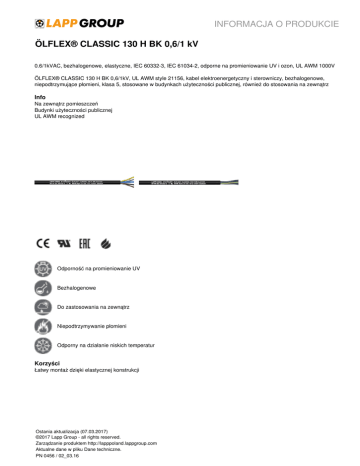 INFORMACJA O PRODUKCIE ÖLFLEX® CLASSIC 130 H BK 0,6/1 kV