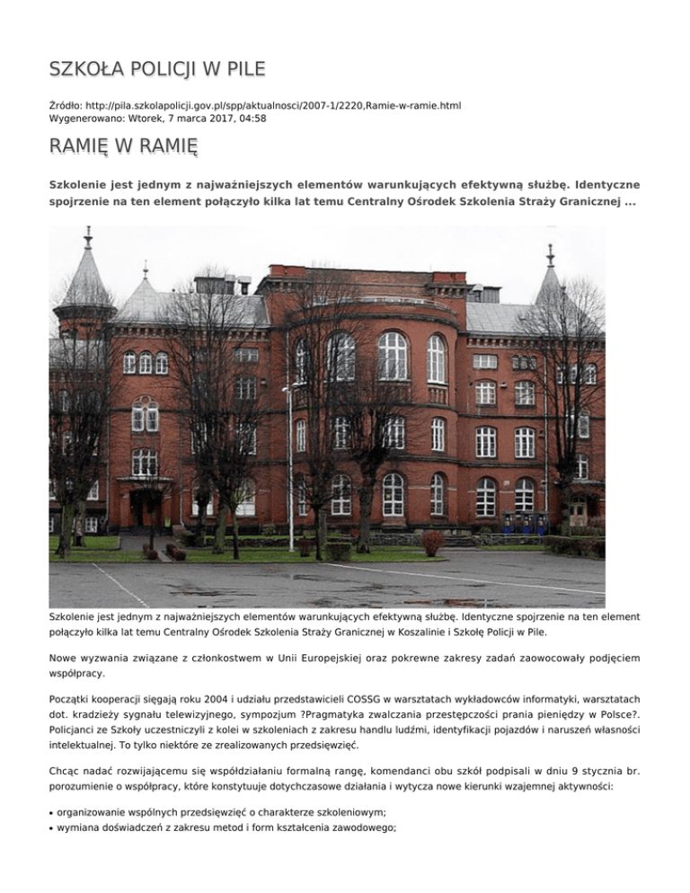 SZKOŁA POLICJI W PILE RAMIĘ W RAMIĘ
