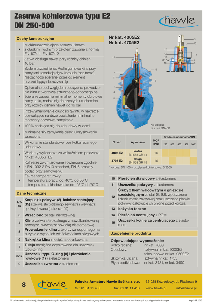 Zasuwa kołnierzowa typu E2 DN 250-500