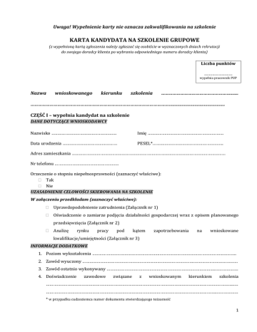 karta kandydata na szkolenie grupowe