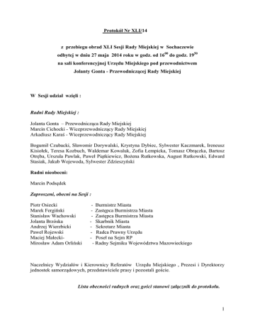 1 Protokół Nr XLI/14 z przebiegu obrad XLI Sesji Rady
