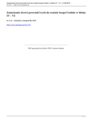 Zamykanie drzwi prowadz?cych do szatnie bezpo?rednio w bloku IV - VI - 11-08-2015 by G.G - - http://www.sp1kutno.pl Zamykanie drzwi prowadz?cych do szatnie bezpo?rednio w bloku IV - VI by G.G - niedziela, Listopad 08, 2015 http://www.sp1kutno.pl/?p=162 _______________________________________________ PDF generated by Kalin's PDF Creation Station 1/1 Powered by TCPDF (www.tcpdf.org)