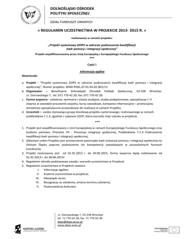 Regulamin uczestnictwa - Dolnośląski Ośrodek Polityki Społecznej