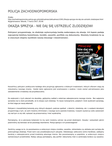POLICJA ZACHODNIOPOMORSKA OKAZJA SPRZYJA