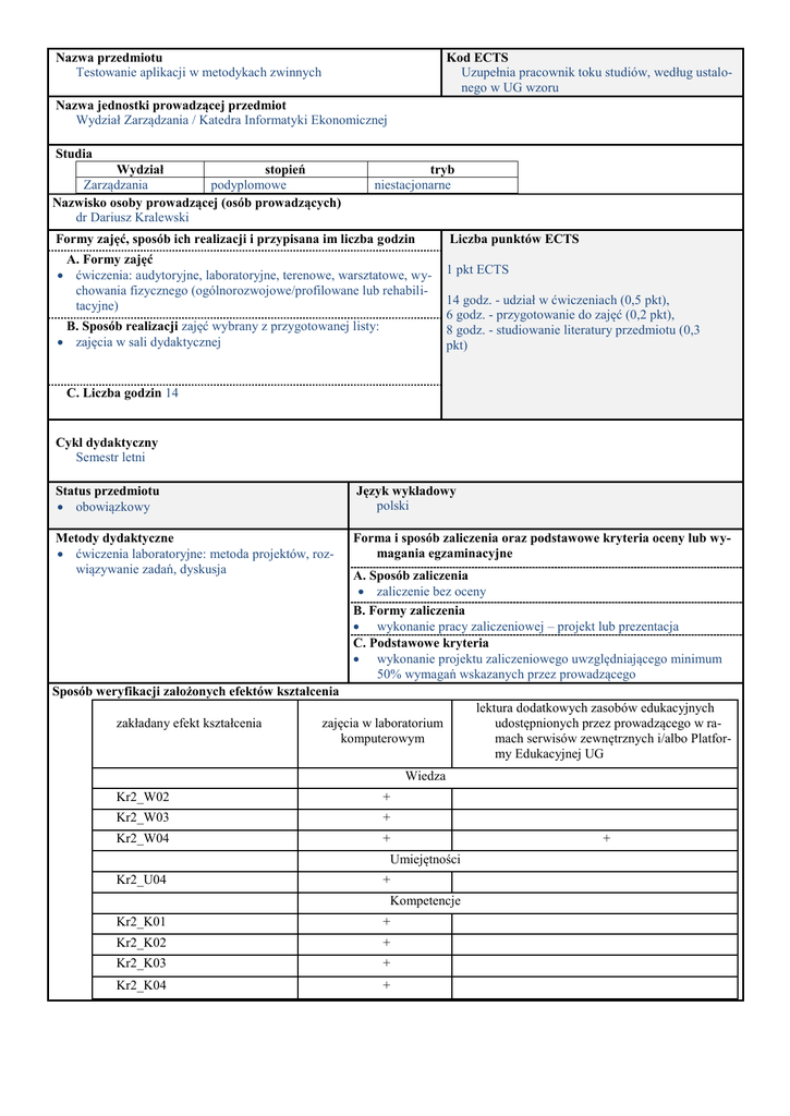 wzór sylabusa UG - Programowanie biznesowych aplikacji