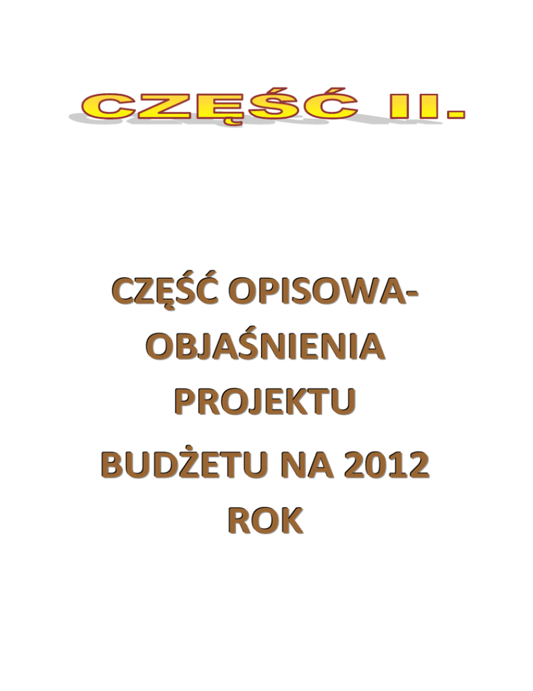 część opisowa- objaśnienia projektu budżetu na 2012 rok