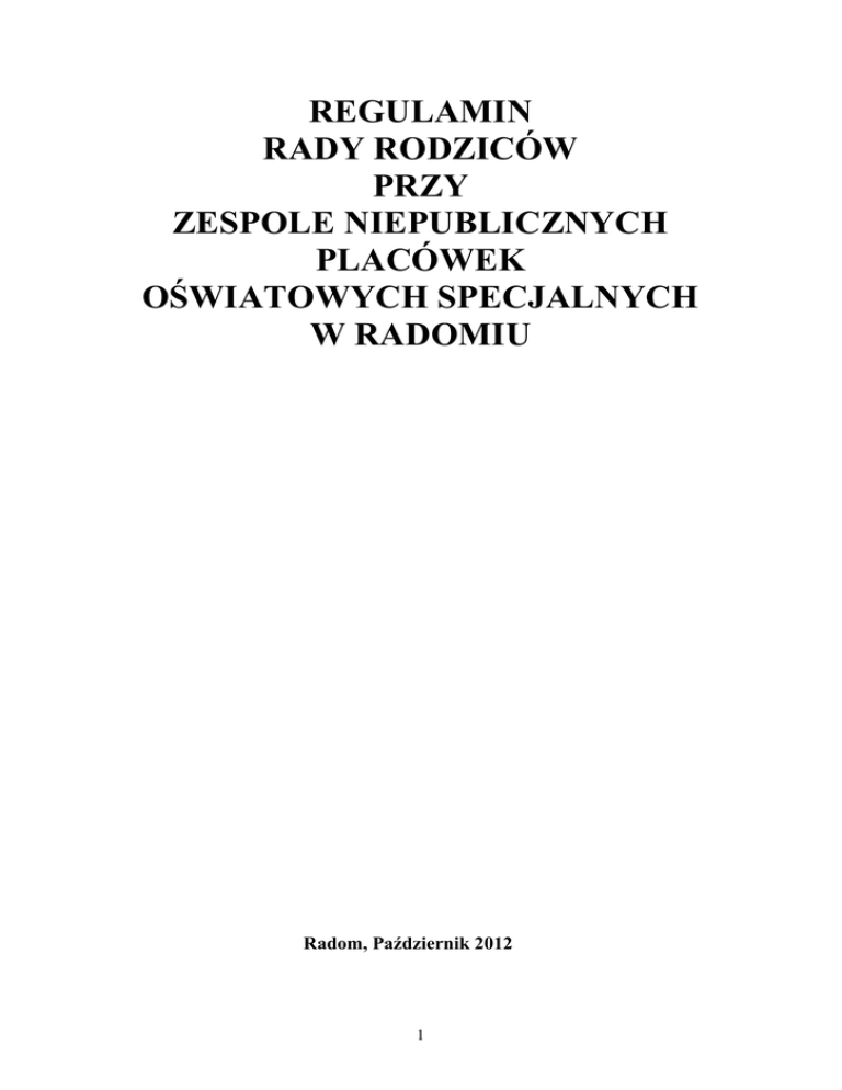 regulamin rady rodziców przy zespole niepublicznych placówek