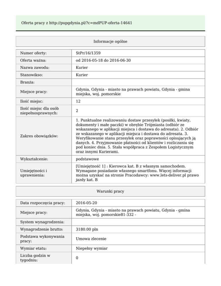 Oferta pracy z http://pupgdynia.pl/?c=mdPUP-oferta