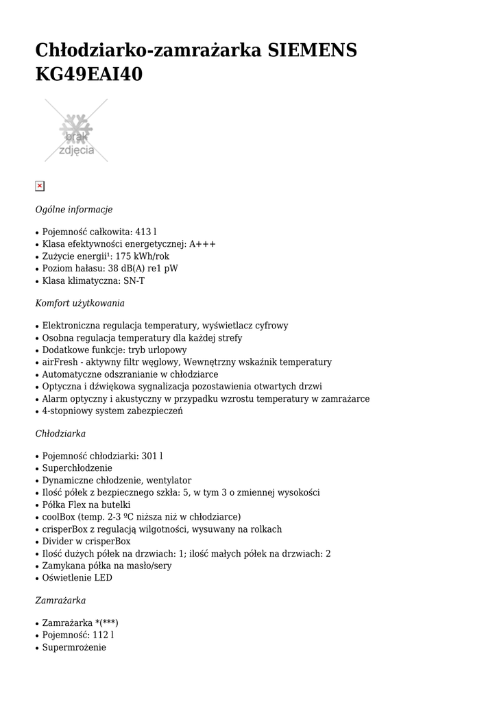 Chłodziarko-zamrażarka SIEMENS KG49EAI40
