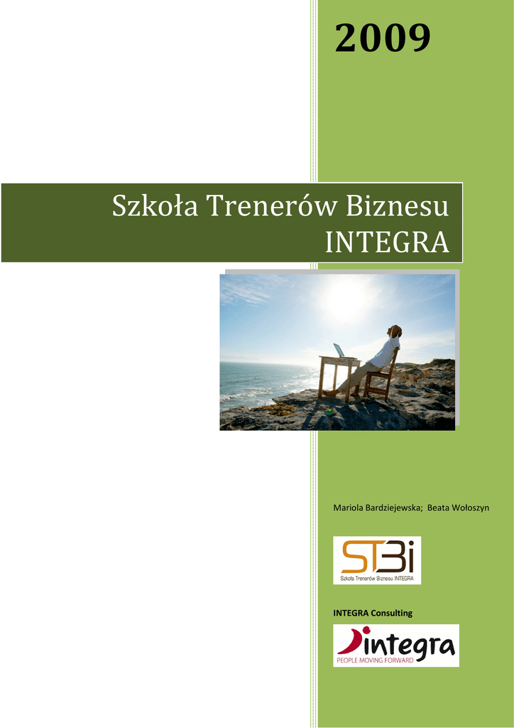 2009 Szkoła Trenerów Biznesu INTEGRA Mariola Bardziejewska; Beata Wołoszyn INTEGRA Consulting ZAŁOŻENIA Firma Integra prowadzi szkolenia od 14 lat. Jak każda firma, również nasza w ciągu tych lat zmieniała się po to, by doskonalić swój warsztat, osiągać coraz lepsze efekty w uczeniu osób i organizacji. Zespół trenerów INTEGRY w obecnym kształcie współpracuje ze sobą od wielu lat. Owocem współpracy kilkunastu doświadczonych trenerów jest wspólna filozofia uczenia dorosłych, sprawdzająca się zarówno na szkoleniach, jak i w działalności doradczej oferowanej firmom. Filozofia ta opiera się na mocnych fundamentach - modelach i standardach pracy trenera, sprawdzonych i doskonalonych 2 w licznych projektach w toku wielu lat pracy trenerskiej. Pragniemy podzielić się naszą wiedzą i umiejętnościami z tymi, którzy rozpoczynają pracę trenerską lub chcą ją doskonalić. W tym celu powołaliśmy Szkołę Trenerów Biznesu INTEGRA. Pragniemy w praktyczny sposób uczyć przyszłych adeptów projektowania i prowadzenia szkoleń oraz zachęcać do refleksji nad własnymi osobistymi kompetencjami trenerskimi. KTO MOŻE ZOSTAĆ UCZESTNIKIEM STBI? Szkoła Trenerów Biznesu INTEGRA kieruje swoją ofertę do szerokiej grupy odbiorców, wszystkich osób, które: pragną poszerzać wiedzę i rozwijać umiejętności w zakresie rozwoju ludzi w organizacjach; z racji wykonywanego zawodu, zajmowanego stanowiska są odpowiedzialne za rozwój innych, a tym samym za doskonalenie organizacji (np. pracownicy działów personalnych); planują zmienić charakter pracy i zdobytą wiedzę przekazywać innym (np. przedstawiciele handlowi); zajmują się prowadzeniem warsztatów, treningów, grup dyskusyjnych itp.; chcą być skuteczne w przekazywaniu wiedzy i pracy z innymi ludźmi; www.integra-consulting.pl wprawiają się w sztuce trenerskiej. KORZYŚCI DLA ADEPTÓW STBI Dzięki aktywnemu uczestnictwu w Szkole Trenerów Biznesu INTEGRA, uczestnicy otrzymają: Wszechstronne przygotowanie do uczenia dorosłych w organizacjach (przekazywanie wiedzy i umiejętności, kształtowanie postaw, utrwalanie wartości w toku codziennych doświadczeń i kontaktów zawodowych); możliwość uczenia się od zespołu profesjonalistów – trenerów biznesu z kilkunastoletnim doświadczeniem; poznanie spójnej koncepcji dotyczącej pracy trenera w obszarach: rozwoju osobistego, znajomości warsztatu trenerskiego i rozumienia zasad funkcjonowania organizacji; okazję do zaprojektowania własnego szkolenia pod superwizją doświadczonego trenera oraz sprawdzenia siebie w roli trenera; możliwość zebrania ciekawych materiałów szkoleniowych oraz zgromadzenia wiedzy niezbędnej w późniejszej, samodzielnej pracy. www.integra-consulting.pl 3 HARMONOGRAM I ZAKRES TEMATYCZNY ZAJĘĆ BLOK I BLOK II BLOK III ROZWÓJ OSOBISTY I ZAWODOWY TRENERA METODYKA PRACY TRENERA SPECYFIKA FUNKCJONOWANIA ORGANIZACJI piątek 16:00-20:00 sobota 9:00-18:15 niedziela 9:00-14:00 11-13.09.09 I TRENING INTEGRACYJNY TRENING INTEGRACYJNY TRENING INTEGRACYJNY 02-04.10.09 II Autoprezentacja i savoir-vivre Kompetencje trenera - mity i fakty; uczenie się dorosłych Funkcjonowanie organizacji Strategie organizacji 23-25.10.09 III Radzenie sobie ze stresem Proces grupowy. Metody pracy z grupą cz.1 Kultura organizacji 06-08.11.09 IV Profilaktyka emisji głosu Metody pracy z grupą cz.2 Funkcje działu HR w organizacji 04-06.12.09 V Kultura języka Metodyka pracy w sytuacjach trudnych Systemy ocen 08-10.01.10 VI Rozwijanie własnej kreatywności Badanie i analiza potrzeb szkoleniowych Zarządzanie - funkcje kierownicze 05-07.02.10 VII Autodiagnoza - osobowość i temperament Projektowanie scenariusza szkolenia Zarządzanie – systemy motywacyjne 05-07.03.10 VIII Zarządzanie sobą w czasie Wykorzystanie i przekształcanie gotowych ćwiczeń Zmiana w organizacji 09-11.04.10 IX Przygotowanie prezentacji Prezentacja i superwizja warsztatów przygotowanych przez uczestników Ewaluacja szkoleń w kontekście organizacji 07-09.05.10 X Jak przygotować materiały na szkolenie? Prezentacja i superwizja warsztatów przygotowanych przez uczestników System szkoleń, projekt pracy z organizacją, EFS XI INFORMACJE ZWROTNE DLA UCZESTNIKÓW PREZENTACJA I SUPERWIZJA WARSZTATÓW PRZYGOTOWANYCH PRZEZ UCZESTNIKÓW PODSUMOWANIE, EWALUACJA 11-13.06.10 W ramach przygotowanego kursu uczestnicy otrzymają 231 godzin dydaktycznych www.integra-consulting.pl 4 WARUNKI ORGANIZACYJNE Zjazdy odbywają się raz w miesiącu od września 2009 do czerwca 2010 (11 zjazdów). 1. Plan zjazdu: 5 11 zjazdów x 21 godzin każdy = 231 godzin 2. Szkoła, oprócz zajęć grupowych, oferuje indywidualne konsultacje z osobistym doradcą w liczbie 3 godzin dla każdego z uczestników. 3. Zajęcia w szkole rozpoczynają się treningiem interpersonalnym dla uczestników, a kończą podsumowaniem – informacjami zwrotnymi, ewaluacją. 4. Warunkiem ukończenia szkoły jest obecność na 80% zajęć oraz przygotowanie scenariusza i realizacja jego części na grupie uczestników szkoły. Wszystkie szkolenia prezentowane przez uczestników podlegają superwizji doświadczonych trenerów. 5. W ramach szkoły, uczestnicy otrzymują materiały podczas każdego zjazdu. 6. Na zakończenie uczestnicy otrzymują certyfikat ukończenia SZKOŁY TRENERÓW BIZNESU INTEGRA. www.integra-consulting.pl ZASADY REKRUTACJI Warunkiem przyjęcia do STBI INTEGRA jest: 6 Zgłoszenia przyjmujemy do 2 września 2009! Ze względu na ograniczoną liczbę miejsc, o przyjęciu decyduje kolejność zgłoszeń. Opłata za naukę składa się z: bezzwrotnej opłaty wpisowej w wysokości 300 PLN, czesnego w wysokości 8 300 PLN, z możliwością zapłaty w dwóch ratach: 1 rata (całość jednorazowo) 8300 PLN 2 raty 2 x 4300 PLN Terminy płatności: termin I II 1 rata (całość jednorazowo) 11.09.2009 2 raty 11.09.2009 10.01.2010 Opłata za szkołę nie obejmuje kosztów wyżywienia, noclegu ani dojazd