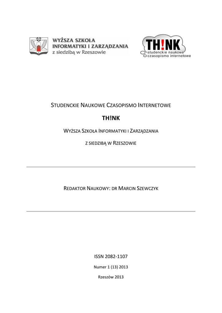 studenckie naukowe czasopismo internetowe issn 2082-1107