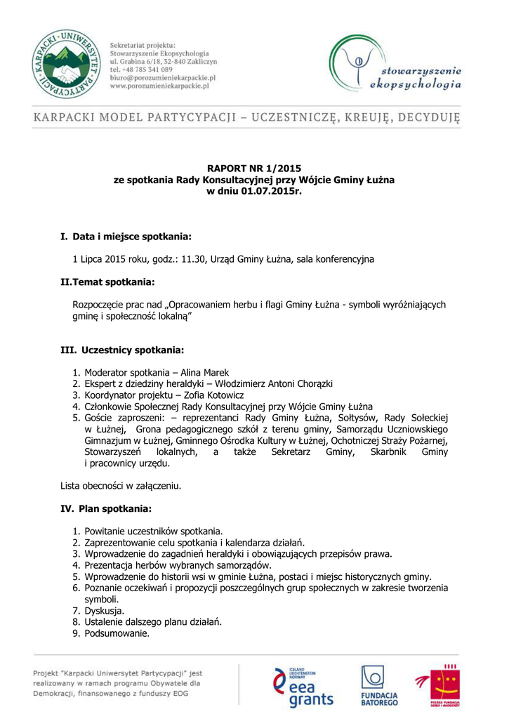 Raport z I spotkania Rady Konsultacyjnej (Gmina Łużna, 1 lipca 2015)