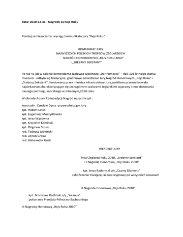 data: 2010-12-31 - Nagrody za Rejs Roku Poniżej zamieszczamy