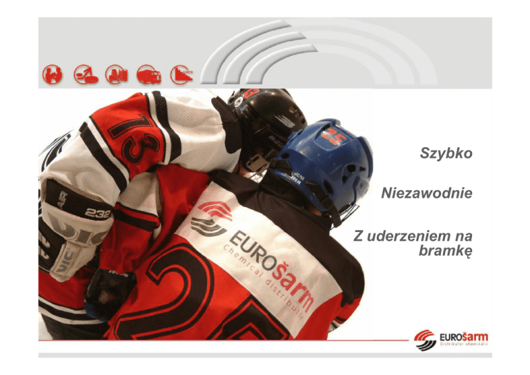 Szybko Niezawodnie Z uderzeniem na bramkę Kim jesteśmy? q Drugi największy dystrybutor podstawowych chemikalii w Republice Czeskiej. q Na rynku firma funkcjonuje już od 1992 roku. q Utarg w 2008 roku wynosił cca. 808 mil. CZK – koron czeskich. q System kierowania i kontroli jakości według normy ČSN EN ISO 9001:2008. q Asortyment ciągle rozszerzamy o specjalne chemikalie dla wybranych segmentów odbiorców. Strategiczne branże: • Obróbka powierzchni metali, przemysł maszynowy • Produkcja farb i lakierów • Produkcja detergentów i chemii gospodarczej • Uzdatnianie wody, energetyka • Przemysł spożywczy • Produkcja hodowlana • Przemysł włókienniczy i odzieżowy • Produkcja papieru i celulozy • Produkcja leków • Produkcja szkła i ceramiki Dlaczego mam wybierać EUROŠarm? Kupno i sprzedaż • Utrzymujemy partnerskie stosunki z ponad 220 renomowanymi producentami na całym świecie. • W 2006 roku ponad 3 500 klientów. • Roczna sprzedaż cca. 85 000 t chemikalii. Dzięki temu klient posiada: ü gwarancje jakości produktów według uzgodnionej specyfikacji wyrobów, ü konkurencyjne ceny. Marketing • Unikatowy katalog wyrobów na www.eurosarm.cz ü Specyfikacje wyrobów, Karty bezpieczeństwa oraz pozostałe informacje o produktach wolno dostępne do ściągnięcia. • Manażer grupy towarowej – fachowiec z danej dziedziny. ü Zna się na sprawach związanych z jego branżą, wie co kupuje. ü potrafi poradzić i rozwiązać specyficzne zagadnienia branżowe. Pakowanie i magazynowanie ü Dokładne dygitalne ważenie. ü Właściwa manipulacja i oznakowanie chemikalii. ü Fleksybilna ilość opakowań. • od worka z wagą 5 kg aż po pełny załadowany samochód ciężarowy. • od jednej butelki aż po wagonową cysternę. Transport Optymalne rozmieszczenie magazynów: • Magazyn centralny Slatiňany • Magazyn lokalny Šenov • Magazyn lokalny Brno Gwarantujemy: ü dostawę towarów do 3 dni kiedykolwiek w Republice Czeskiej (towar z magazynu), ü transport w cenie towaru – klient nie płaci już nic ponadto. EUROŠarm – dystrybutor chemikalii • Elastyczne dostawy ð to Twoje niskie zapasy • Prestiżowy dystrybutor ð to wygodna cena ü Kliencie, oszczędzamy Twoje pieniądze! • Informacje łatwo dostępne na stronach internetu • Kliencie, Twoja praca kończy się na złożeniu zamówienia, reszta należy do nas ü Oszczędzamy Twój czas Typowy zadowolony klient firmy è EUROŠarm
